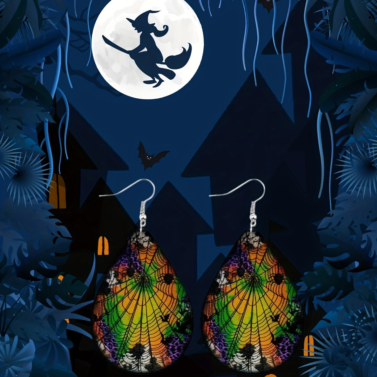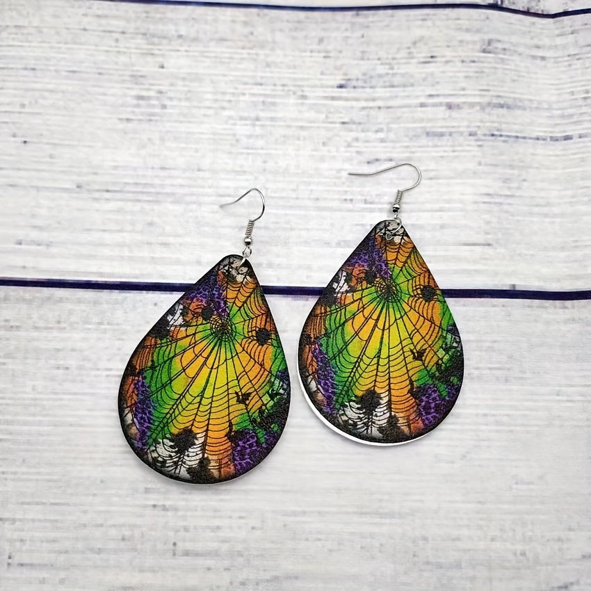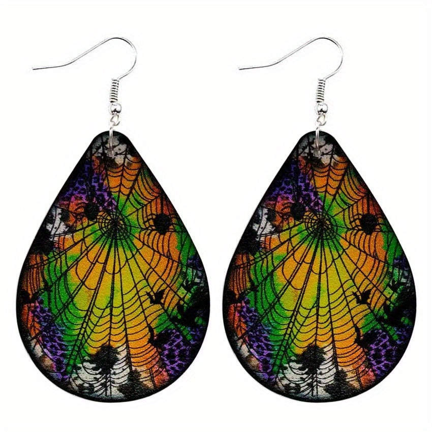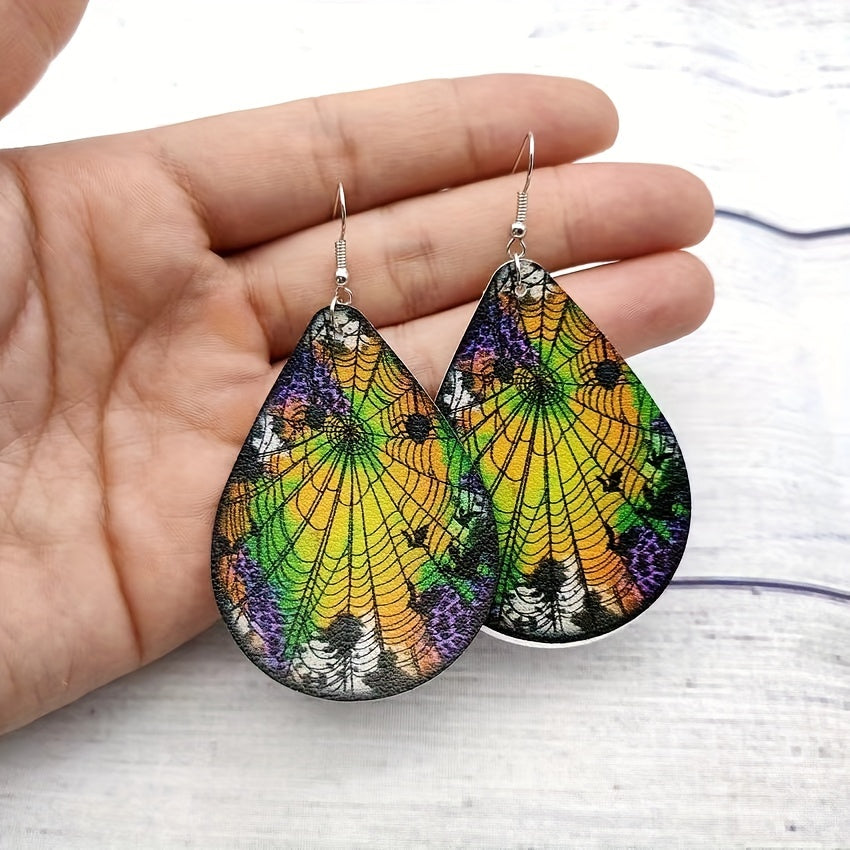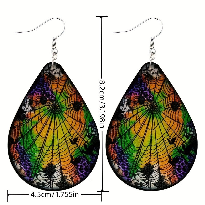 These dangle earrings feature a spooky spider web pattern design, perfect for Halloween. Made of PU leather, these earrings are a creative gift for women and girls.