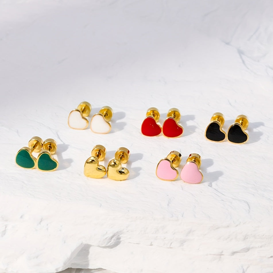 These heart enamel stud earrings are a stylish accessory made from stainless steel with 18K plating. They make a perfect gift for any occasion.
