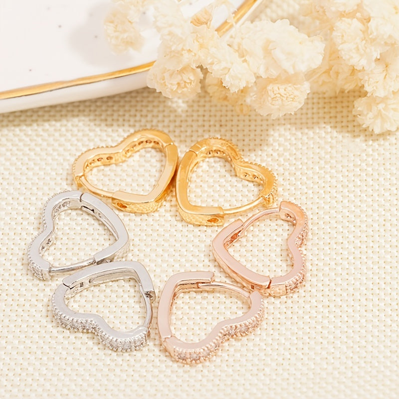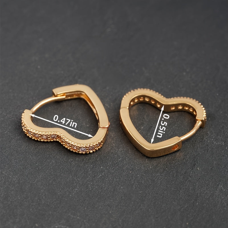 Adorn your ears with these elegant heart-shaped huggie earrings made of 14K plated metal. The small hoops add a touch of charm to your outfit.