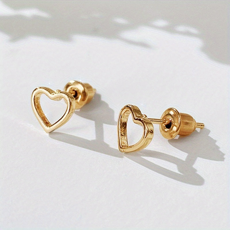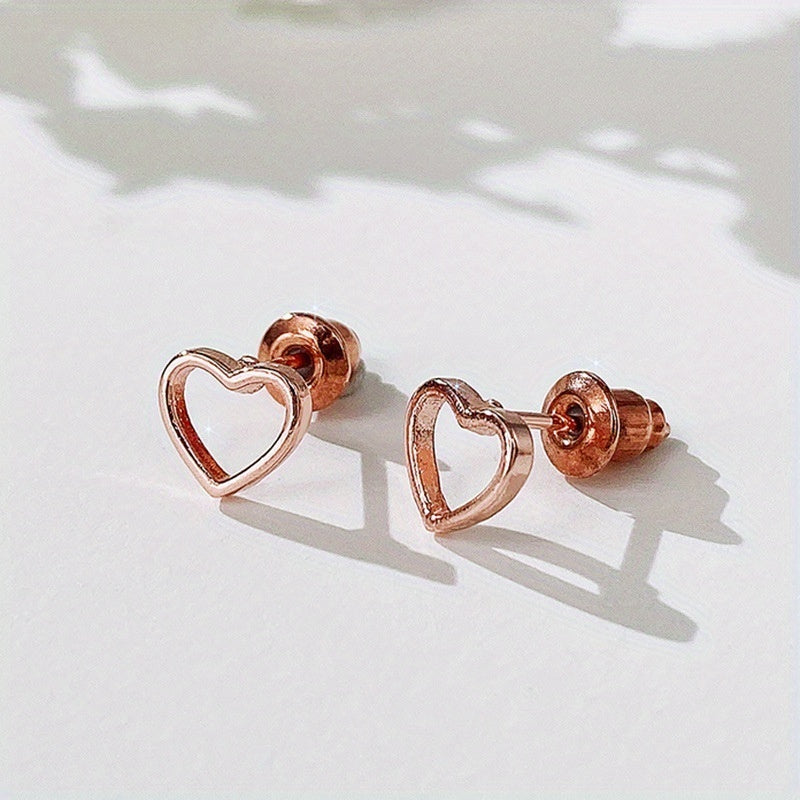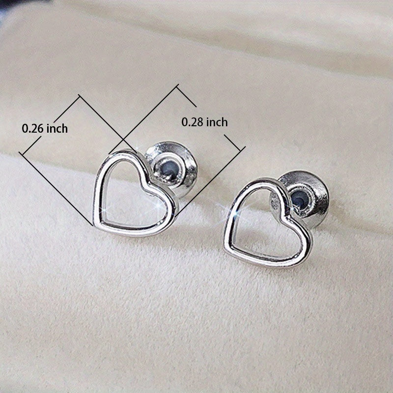 Add a touch of romance to your look with these heart-shaped stud earrings. Made of 925 silver plating, these earrings are both elegant and stylish.
