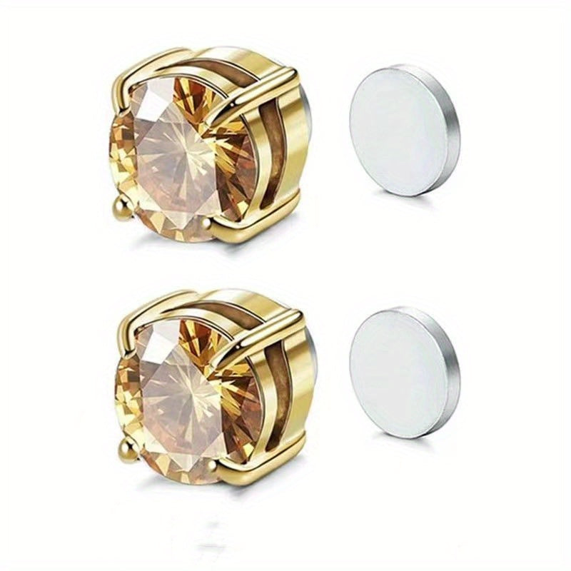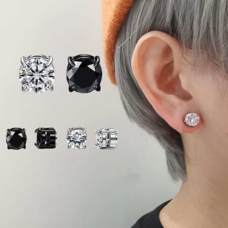 Set of 2 male and female magnetic ear clips with four-claw design and zircon inlay. Perfect for those without ear piercings.
