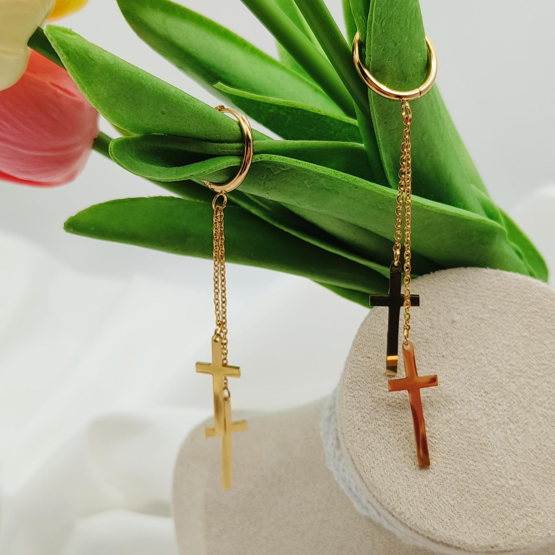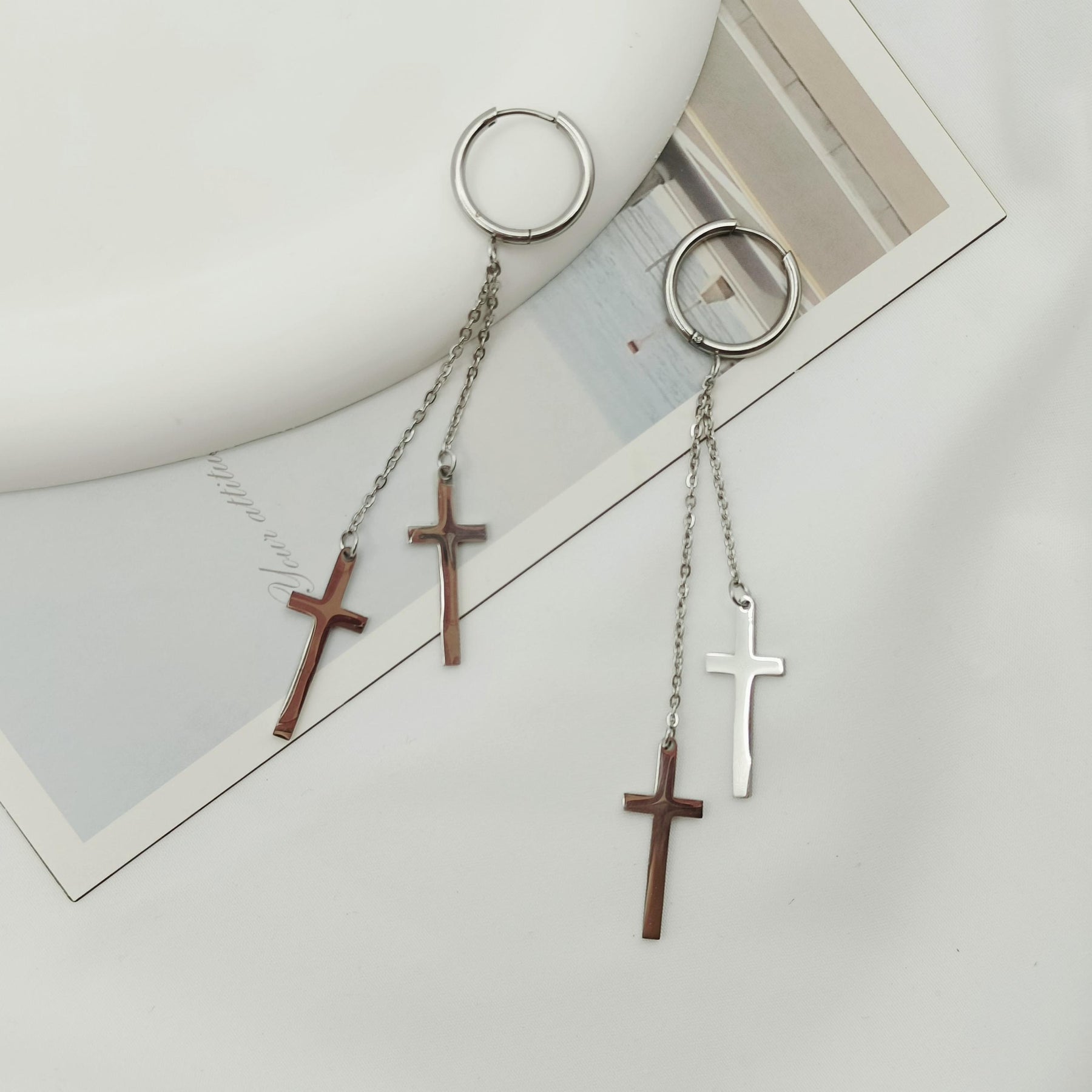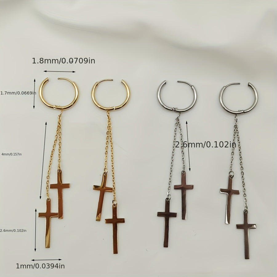 Add a stylish touch to your outfit with these cross tassel drop earrings. Made of durable stainless steel, these earrings feature a cross design and chain detail for a unique look.