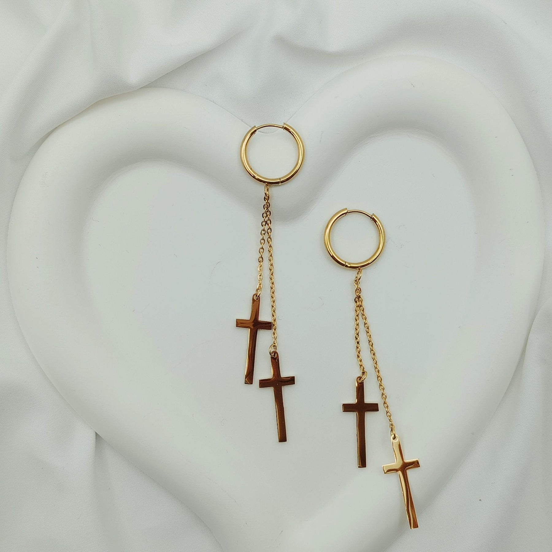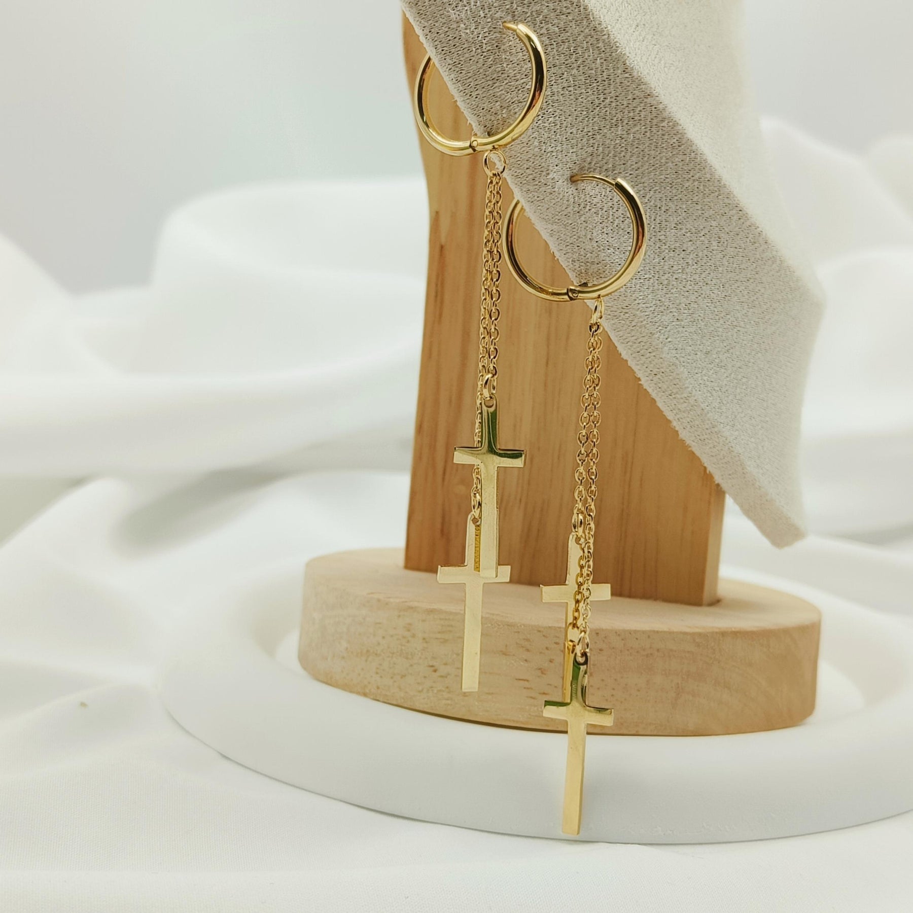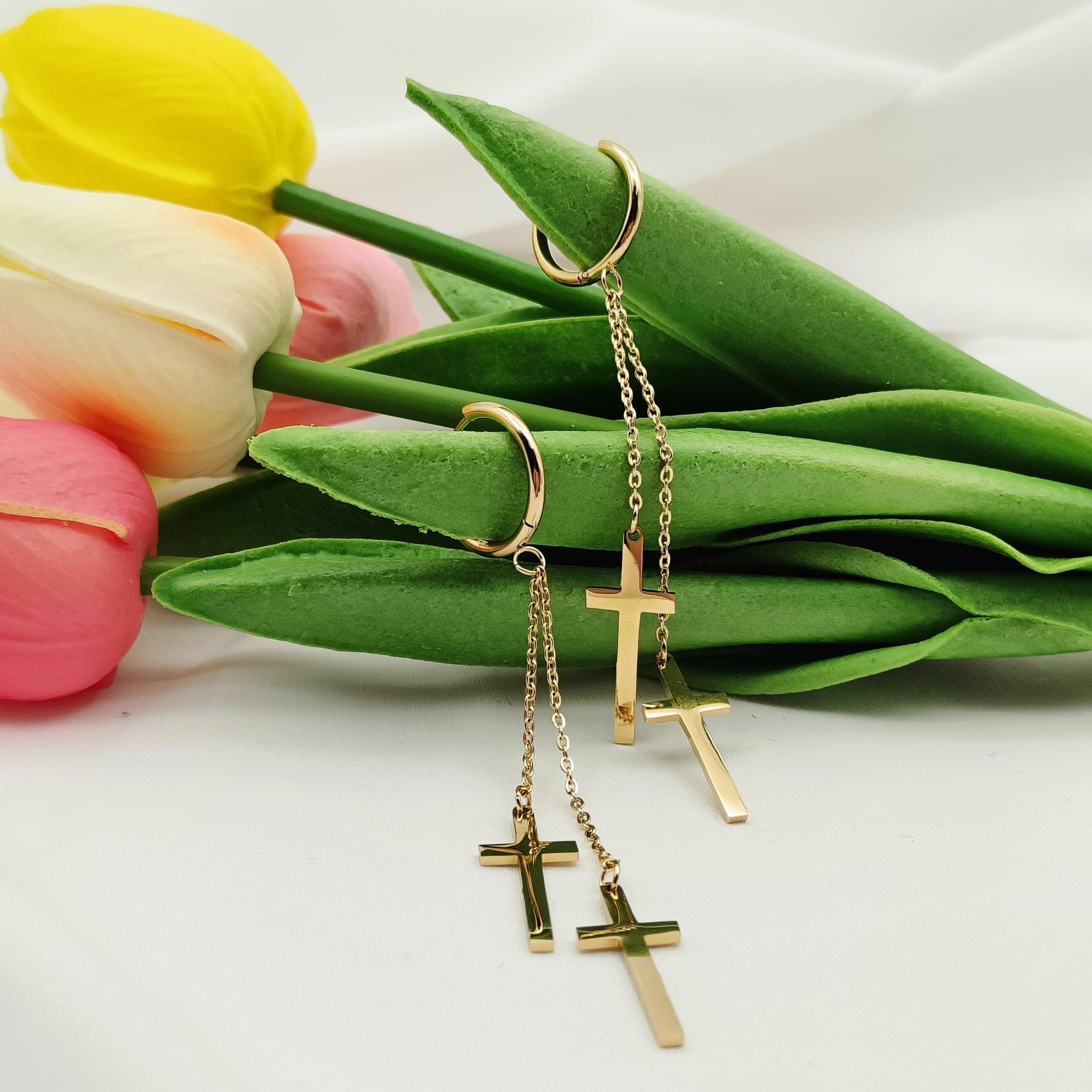Add a stylish touch to your outfit with these cross tassel drop earrings. Made of durable stainless steel, these earrings feature a cross design and chain detail for a unique look.