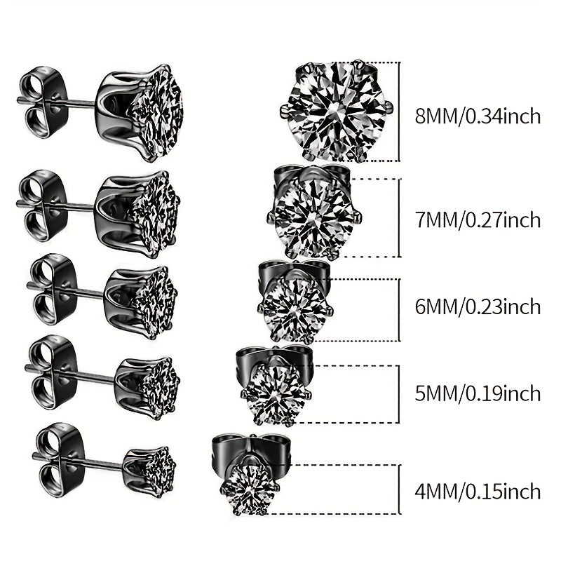 Men's Sparkling Crown Zircon Earrings Stainless Steel Studs
