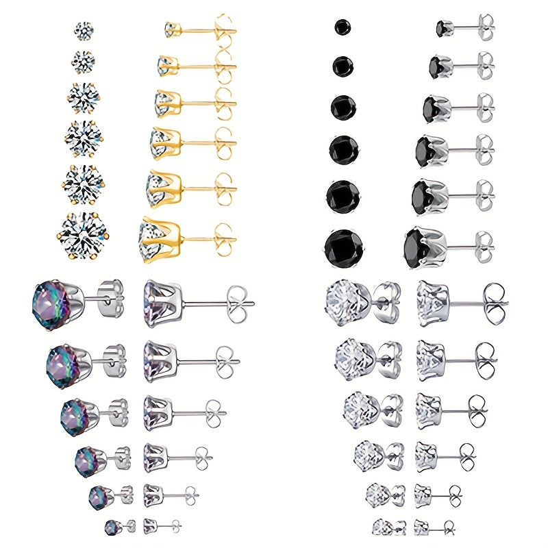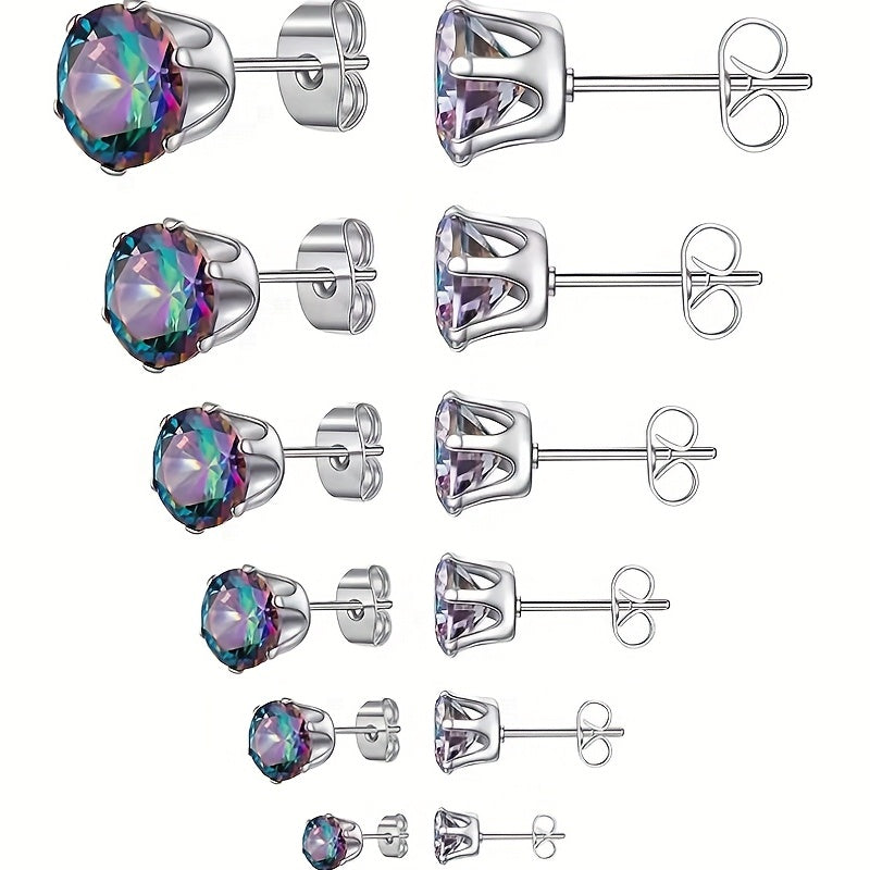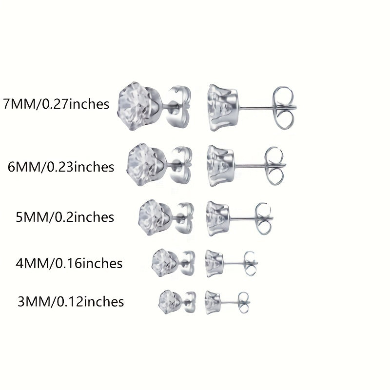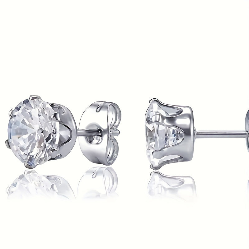 Enhance your style with these hypoallergenic stainless steel stud earrings featuring sparkling crown zircons.