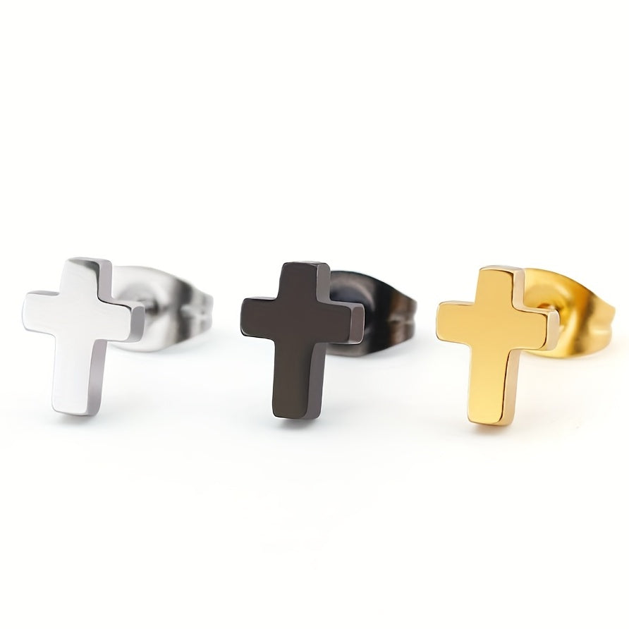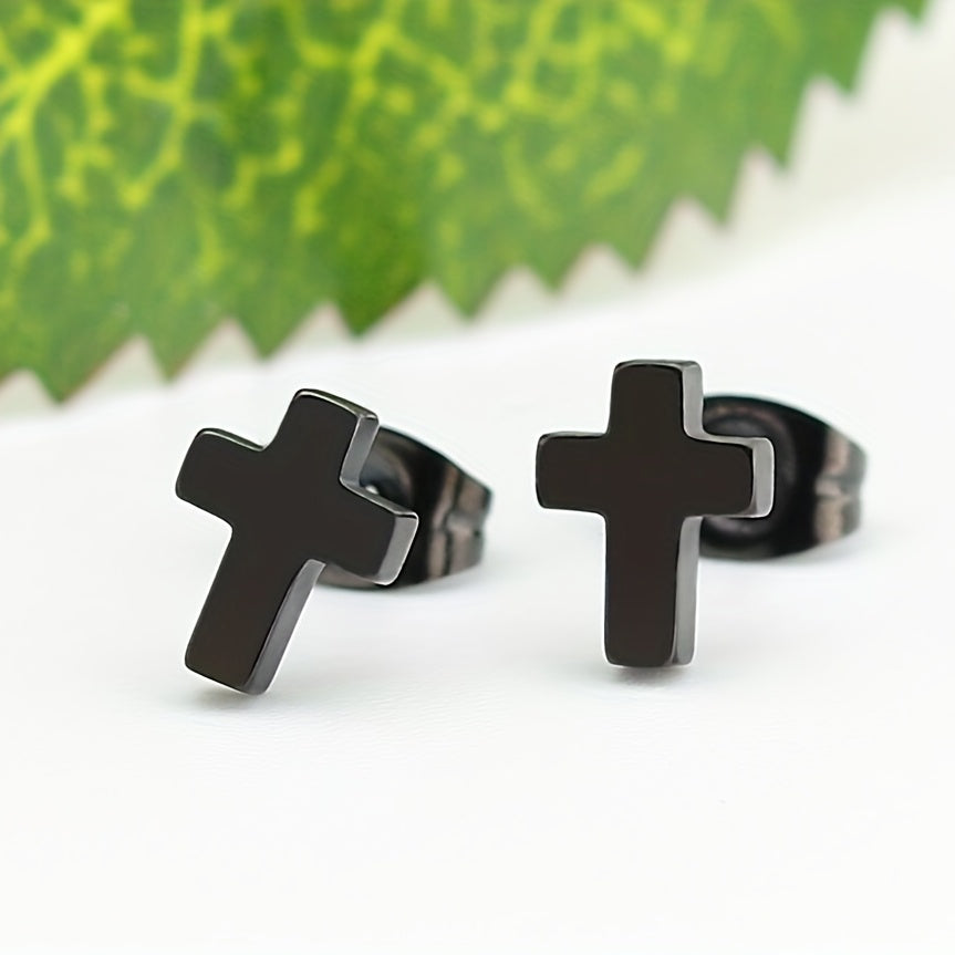 Add a touch of edgy style to your look with these small cross stud earrings. Made of durable stainless steel, they are perfect for men who love the hip hop or punk aesthetic.