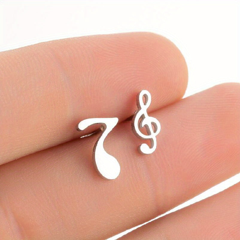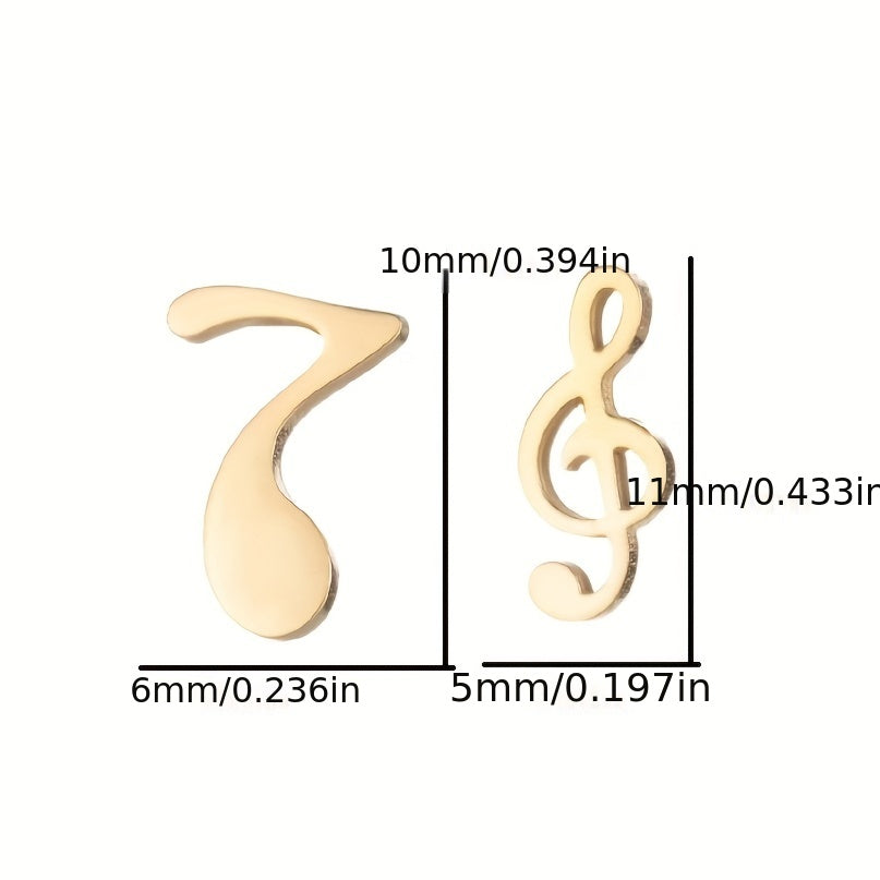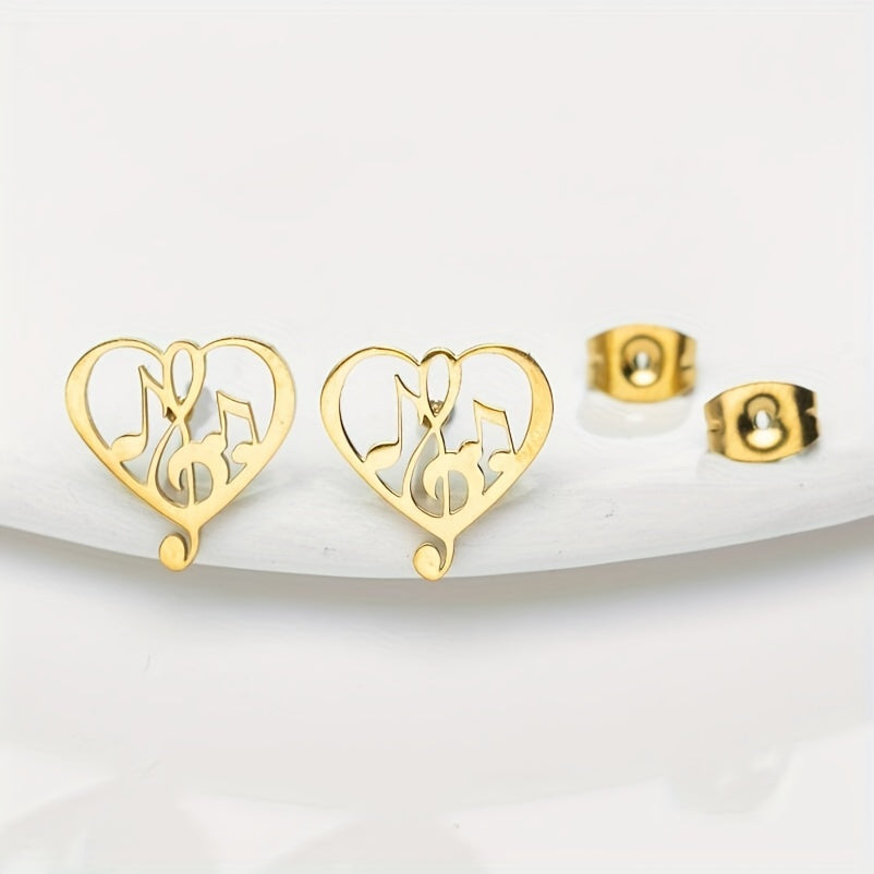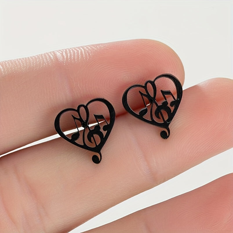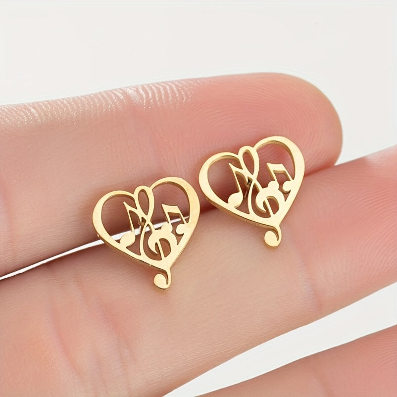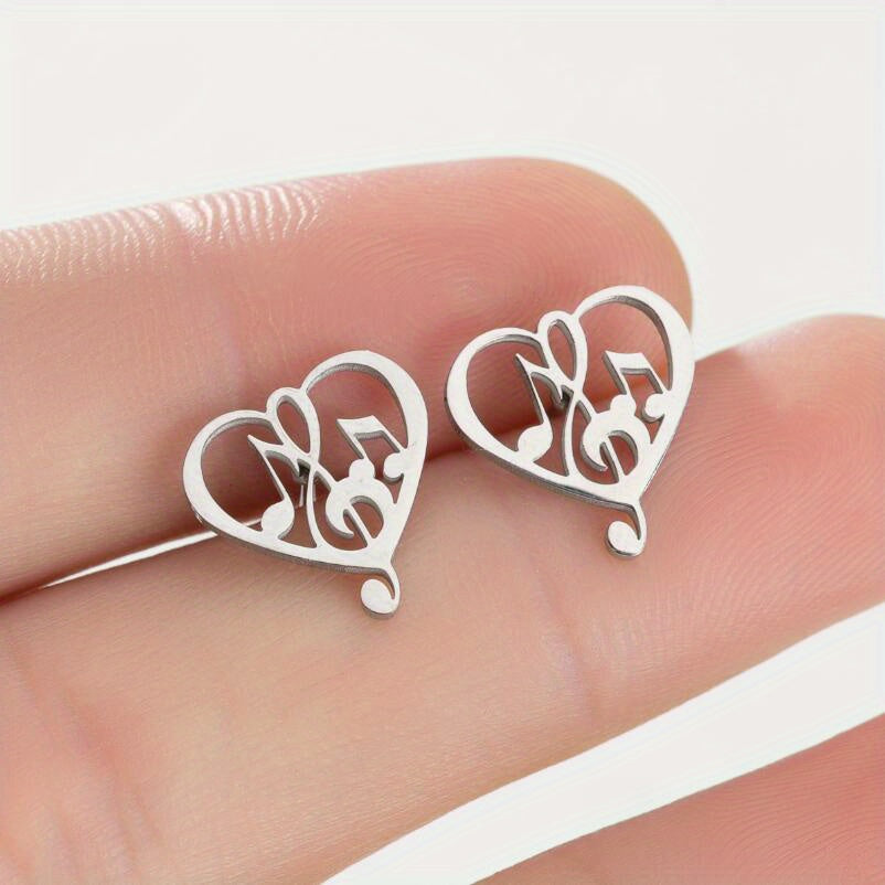 This pair of music note earrings features a heart design with a treble and bass clef, made of durable stainless steel. A perfect accessory for music enthusiasts and a great gift for weddings.