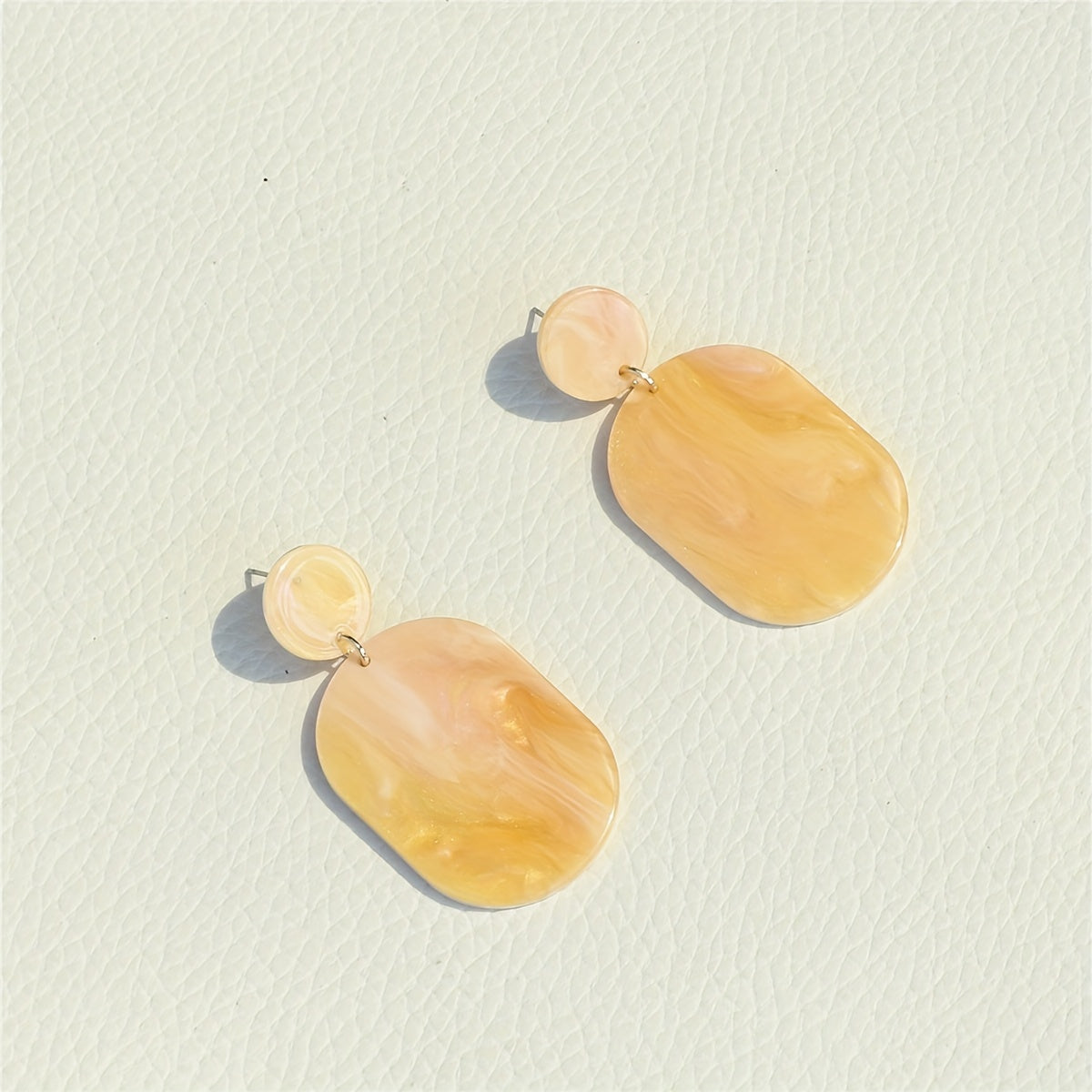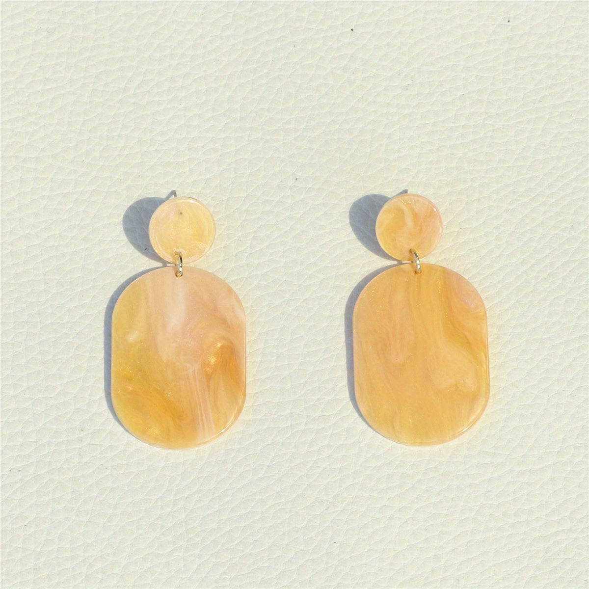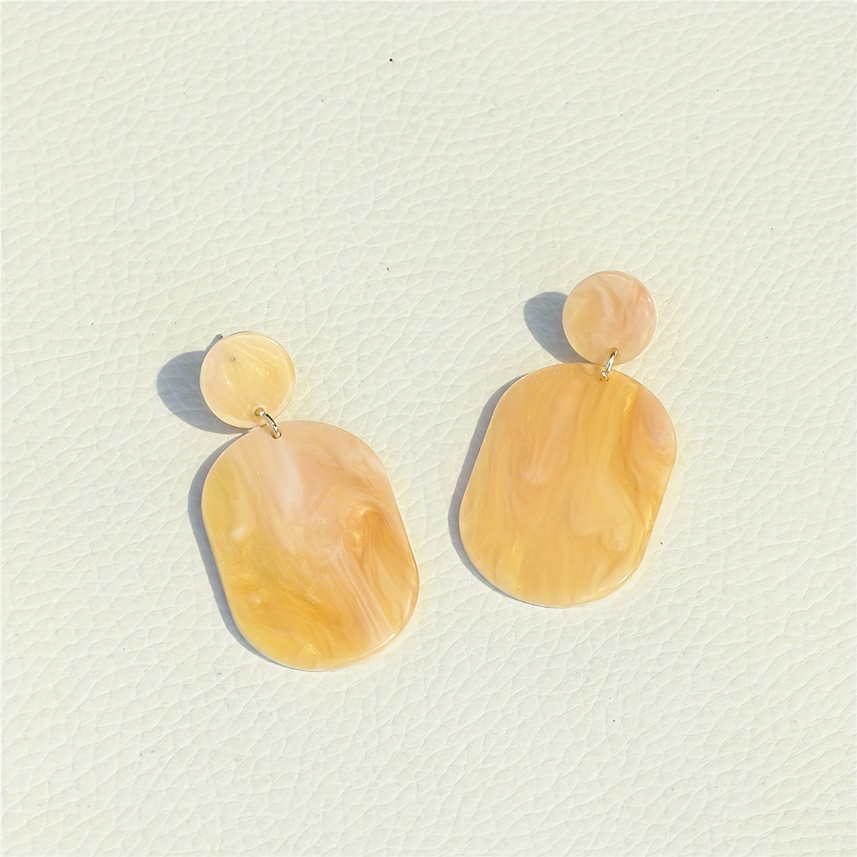 These stylish orange geometric dangle earrings are versatile ornaments that can be worn by women and girls. They are made of acrylic and are perfect for adding a pop of color to any outfit.