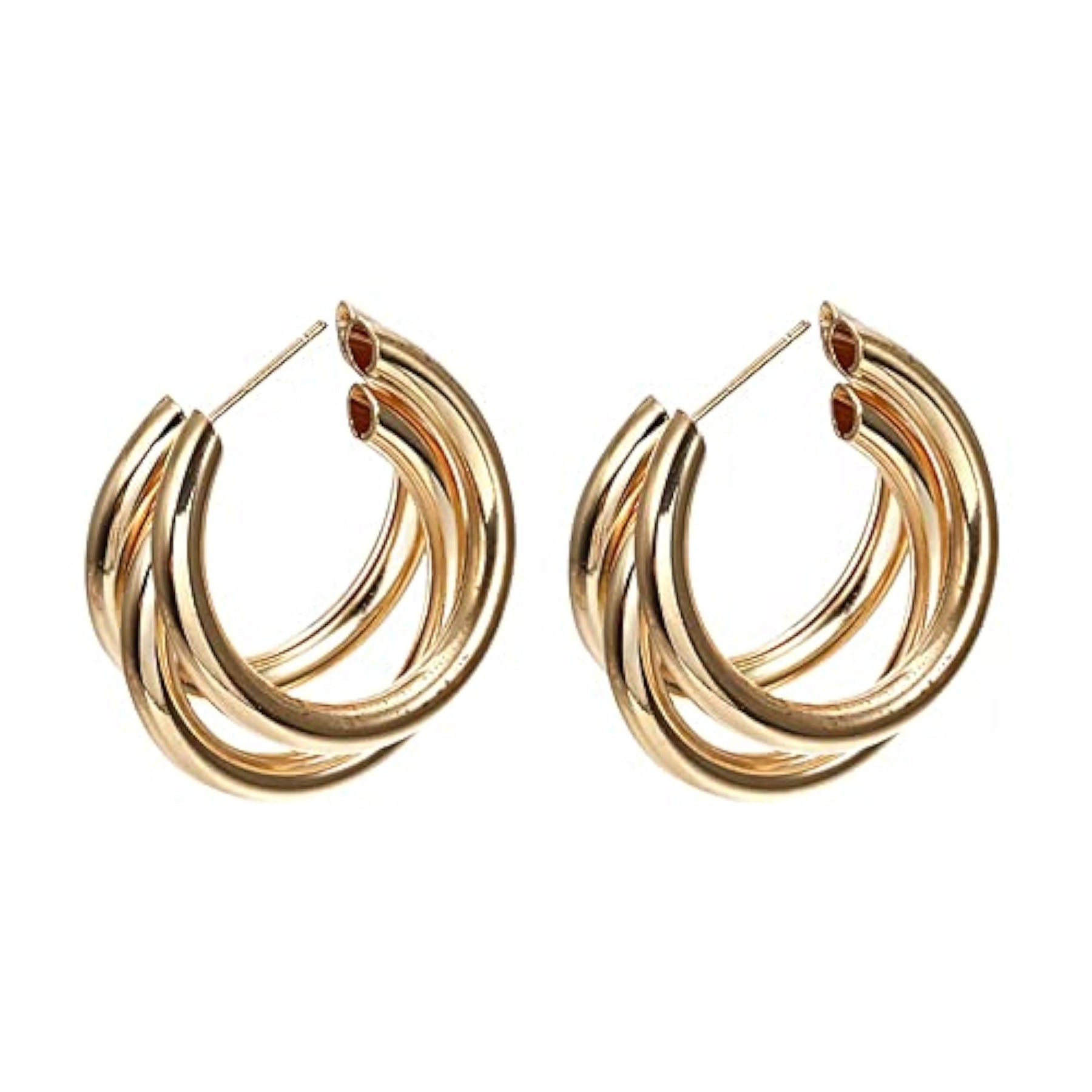 Elevate your look with these stylish triple hoop earrings. Plated for a luxurious finish, these earrings are perfect for any outfit.