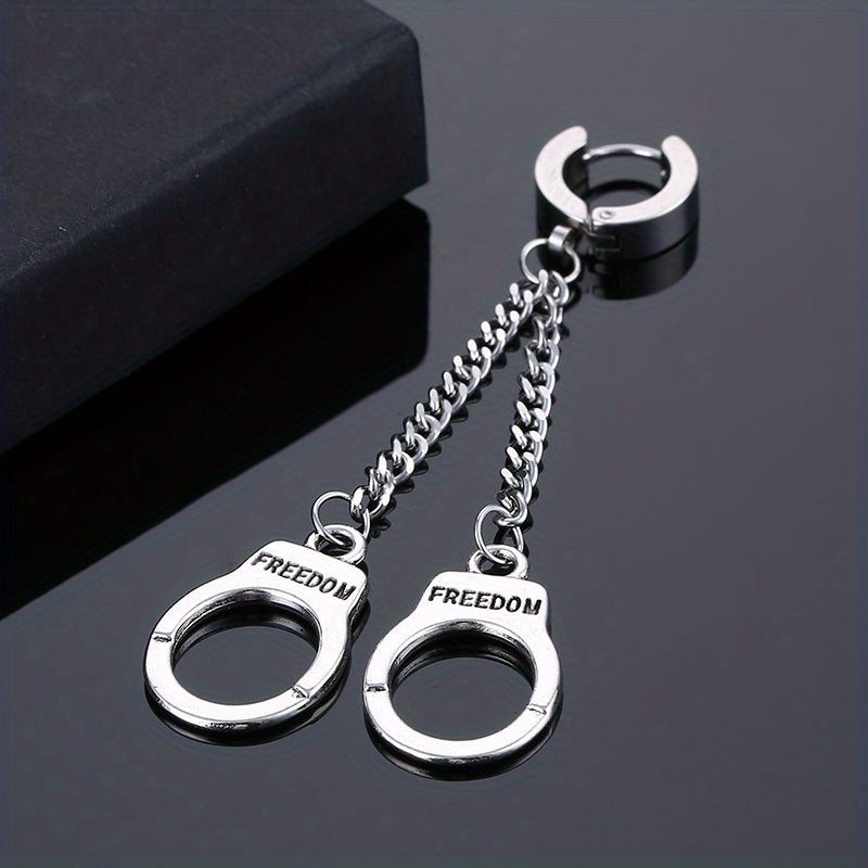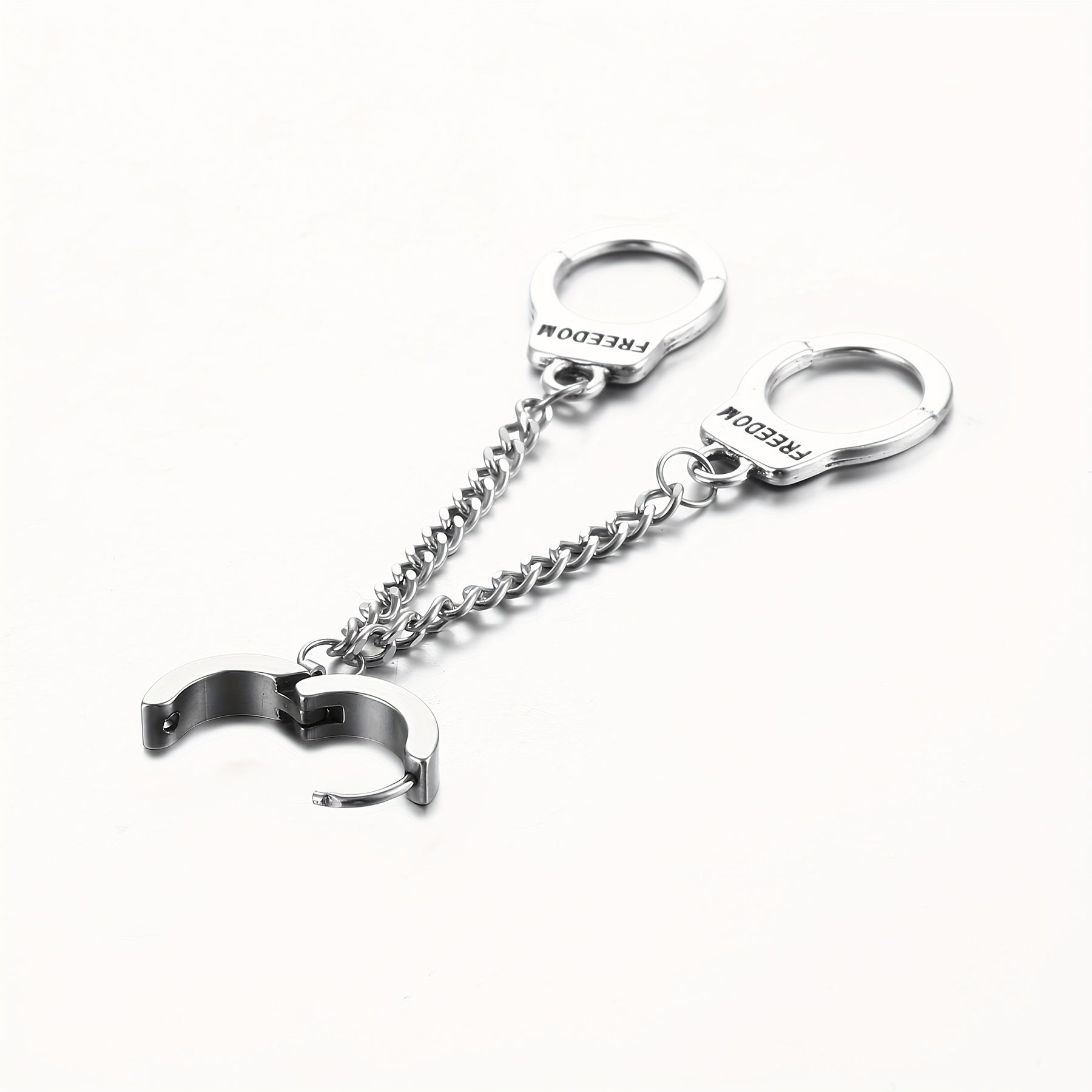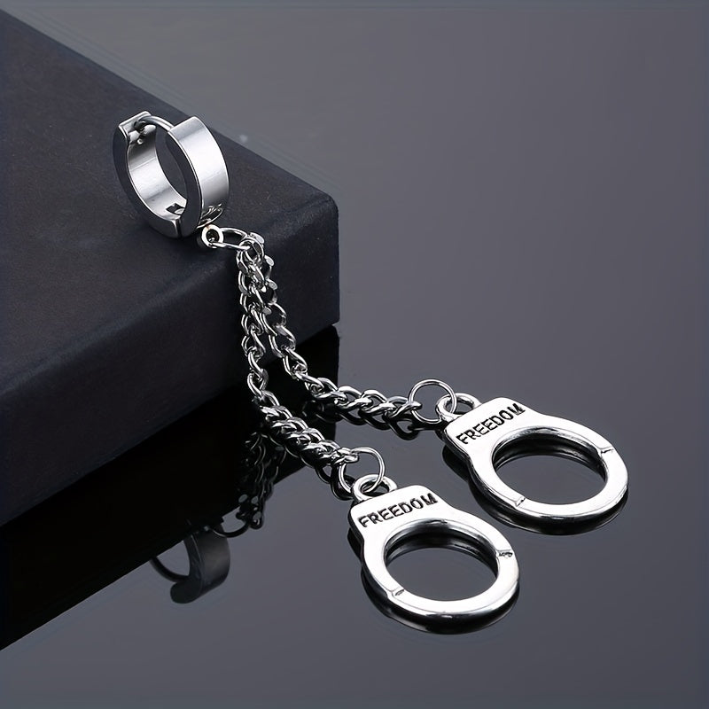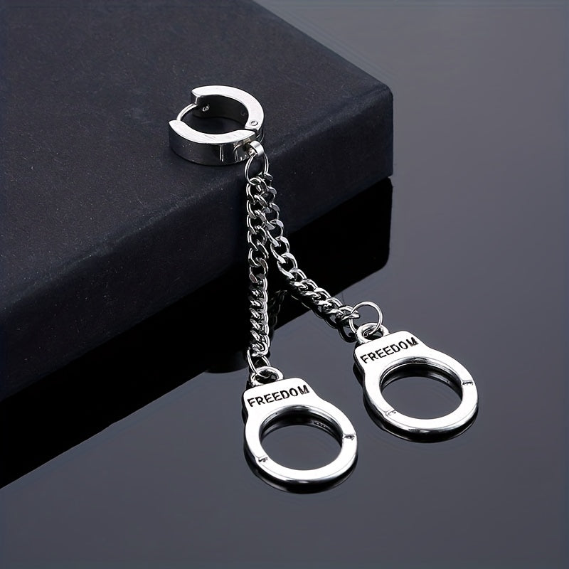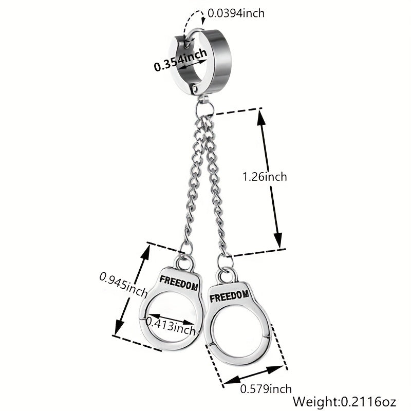Add a touch of punk and hip-hop style to your look with these stainless steel handcuffs earrings. These earrings feature a long chain design with tassel accents for a unique and edgy look.