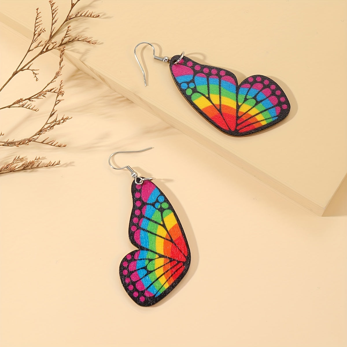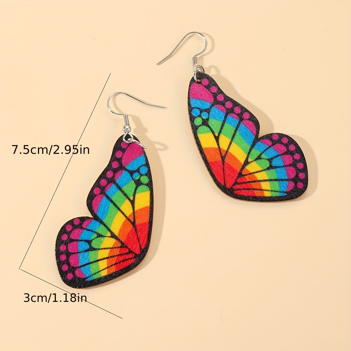 These delicate earrings feature colorful butterfly wing dangles, making them a unique and stylish accessory for women and girls.