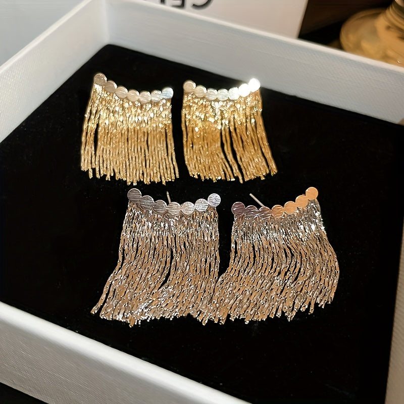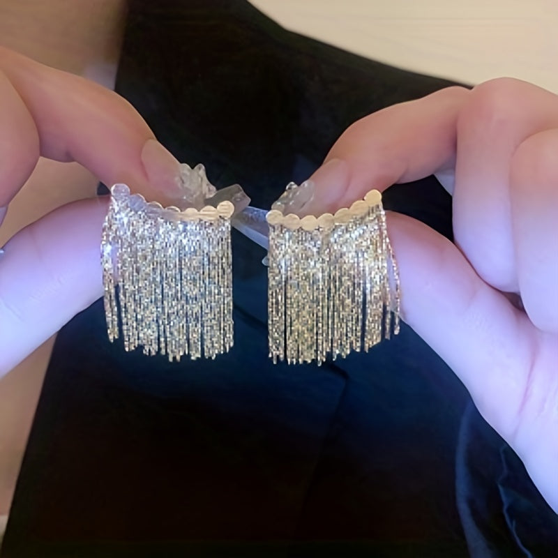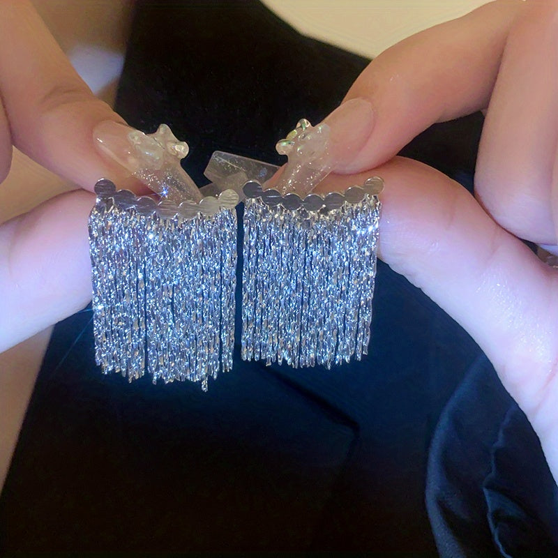 Add a touch of elegance with these silvery sparkling tassel dangle earrings. Made with copper and 18K plated, these earrings are perfect for any occasion.