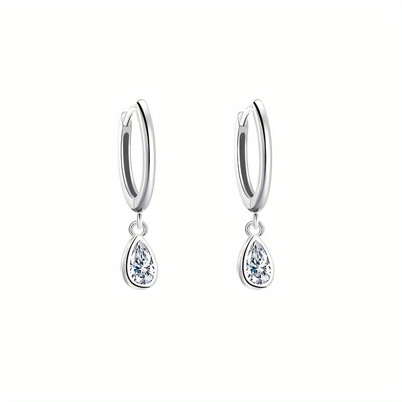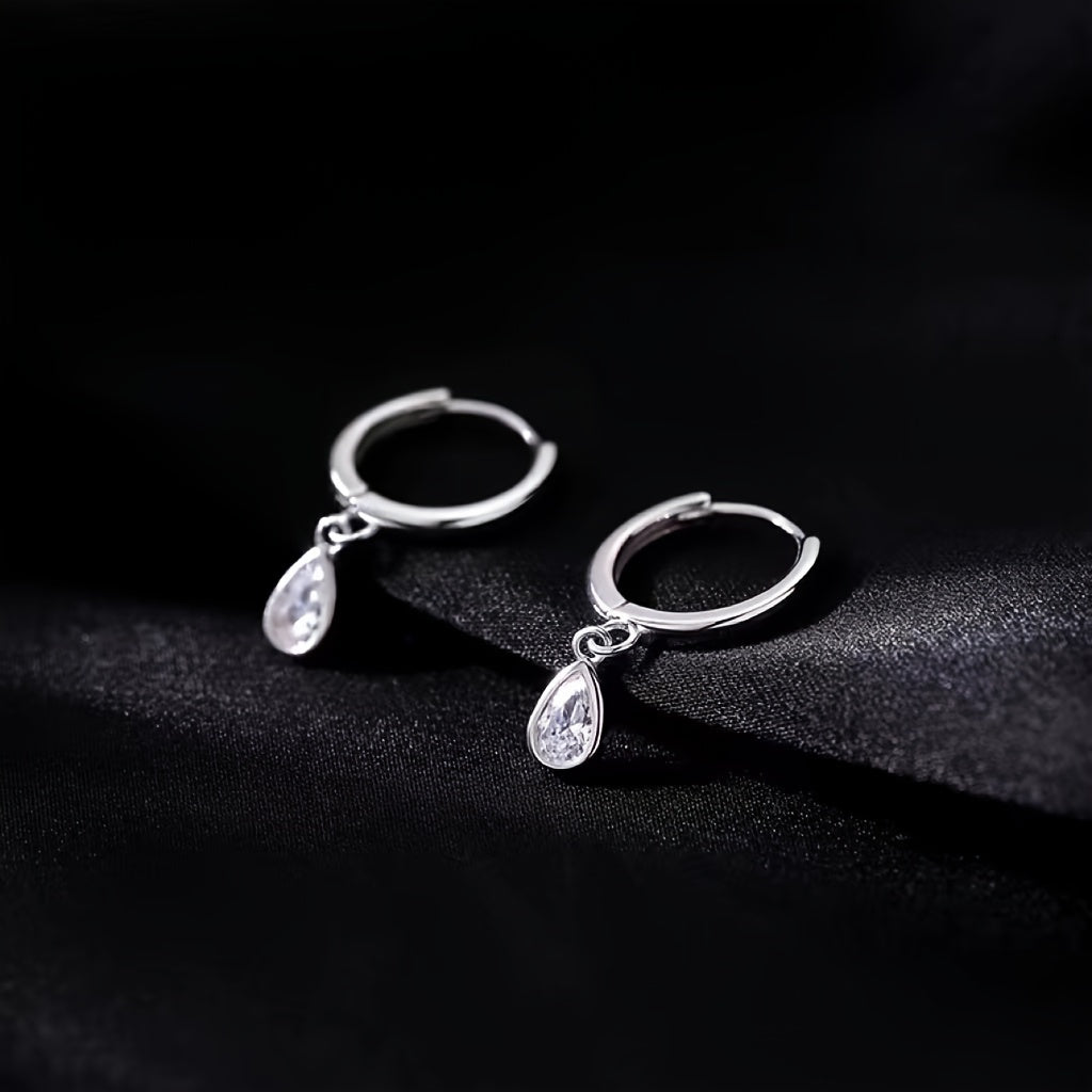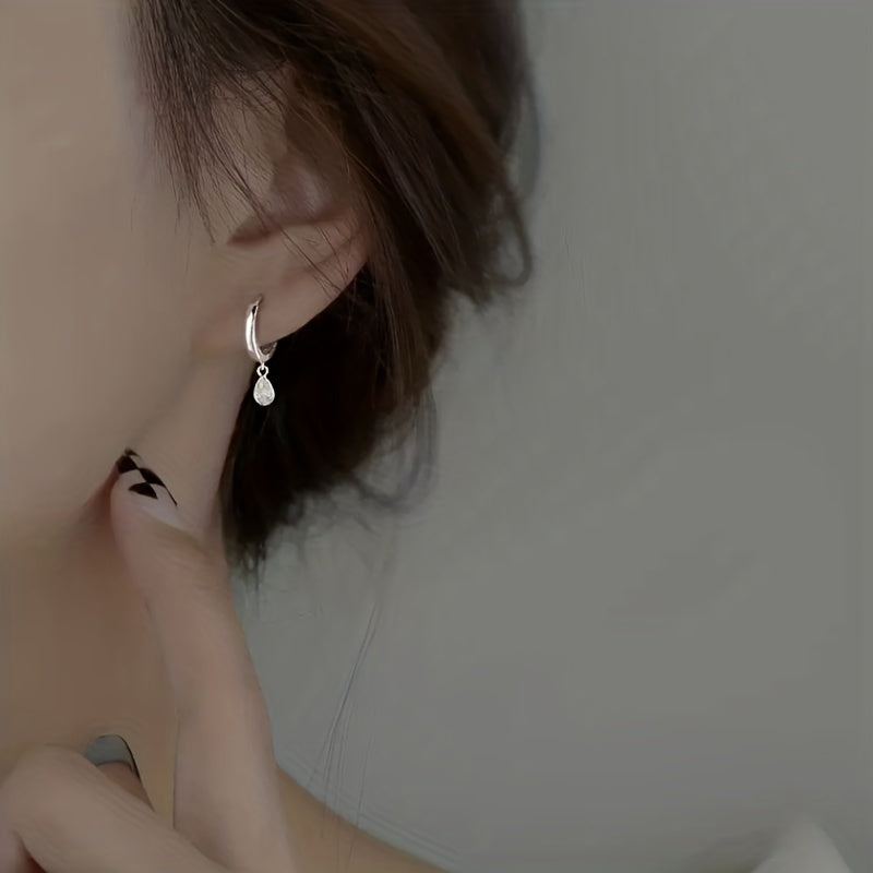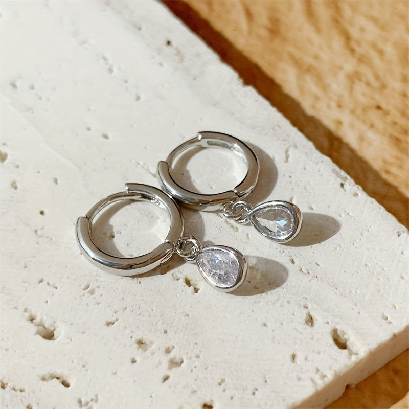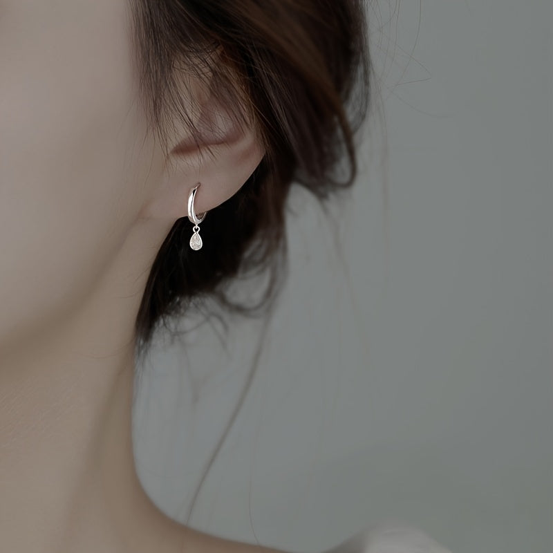Elegant silver-plated earrings featuring a minimalist teardrop shape with shimmering zircon accents.