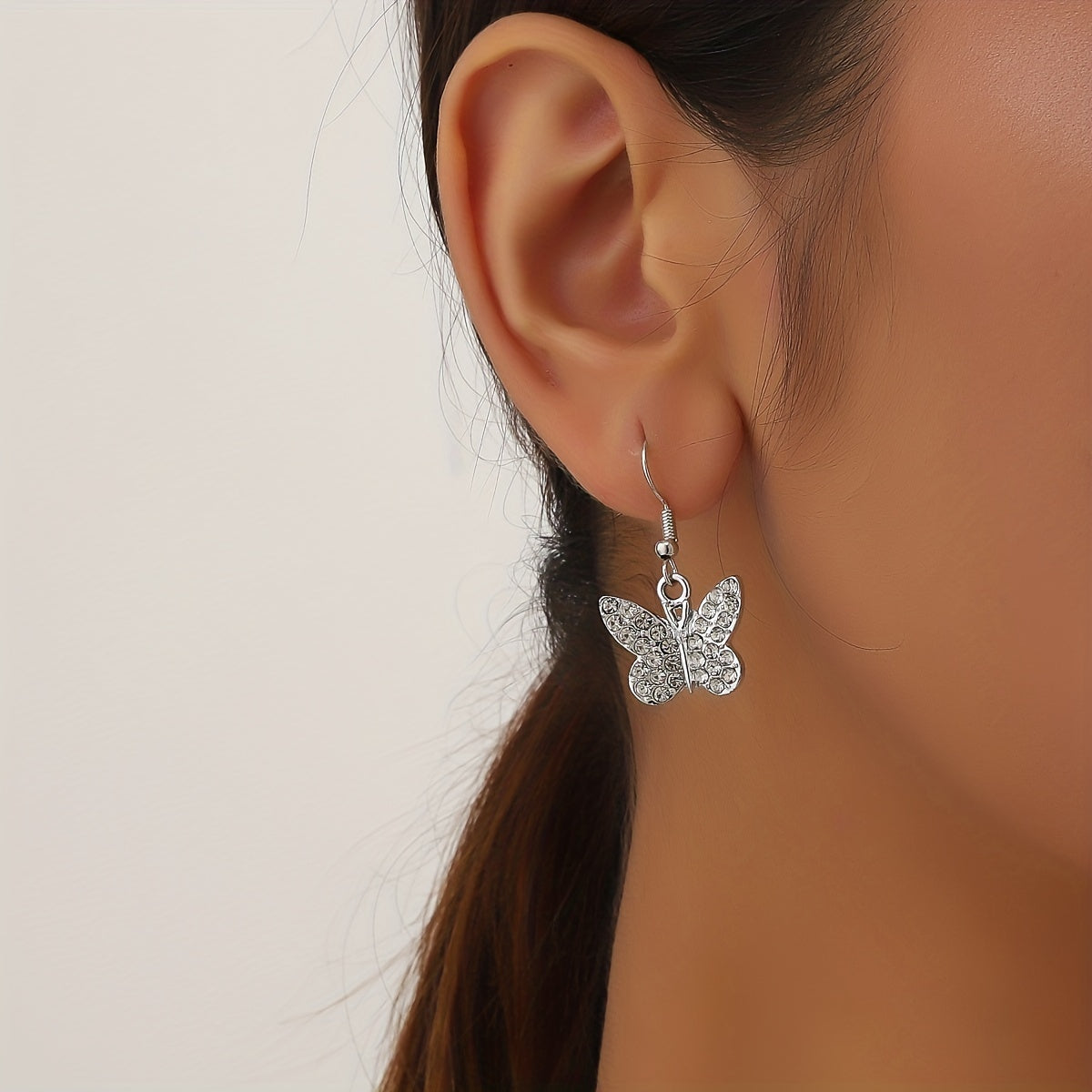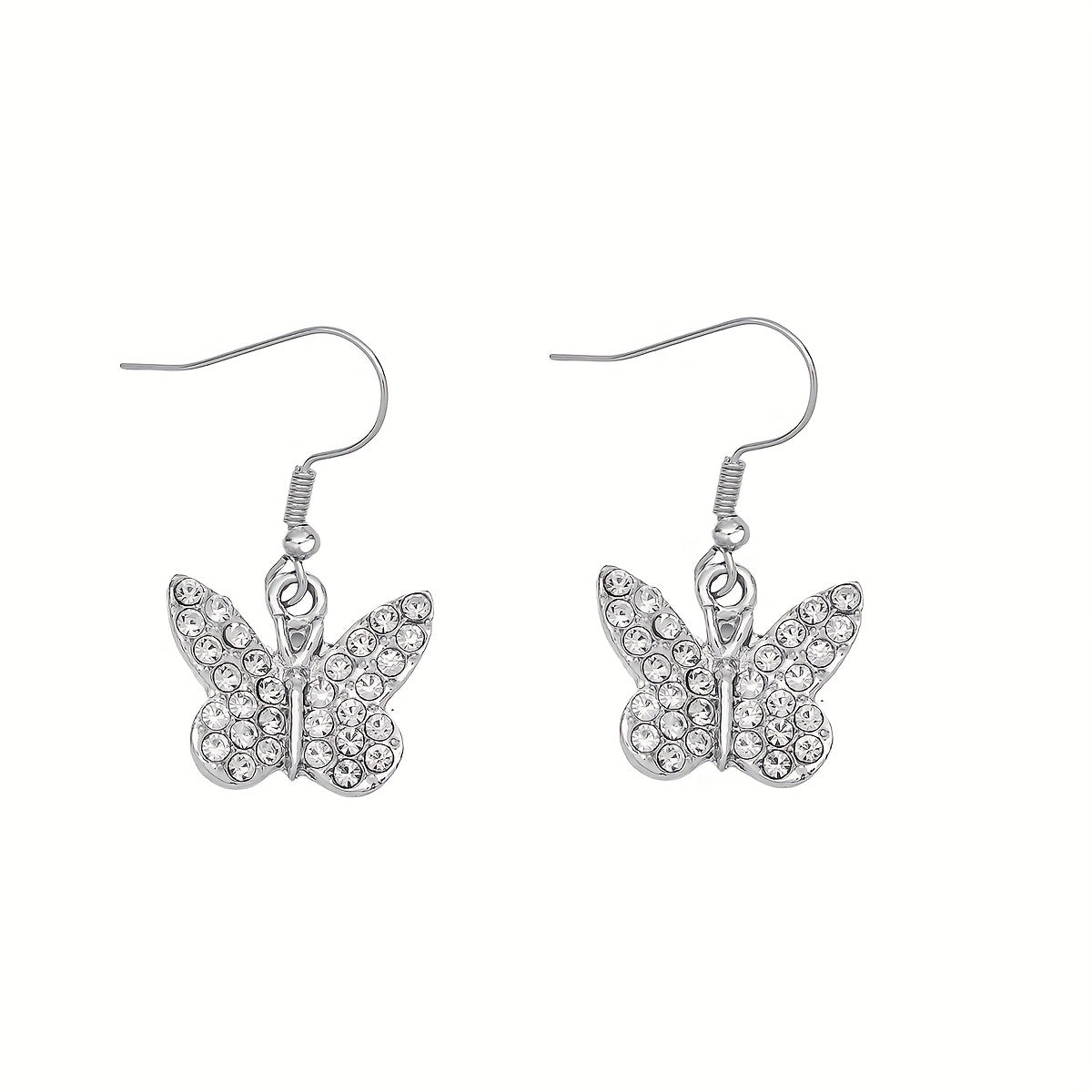 Silvery Butterfly Rhinestone Dangle Earrings Sexy Style Jewelry Gift