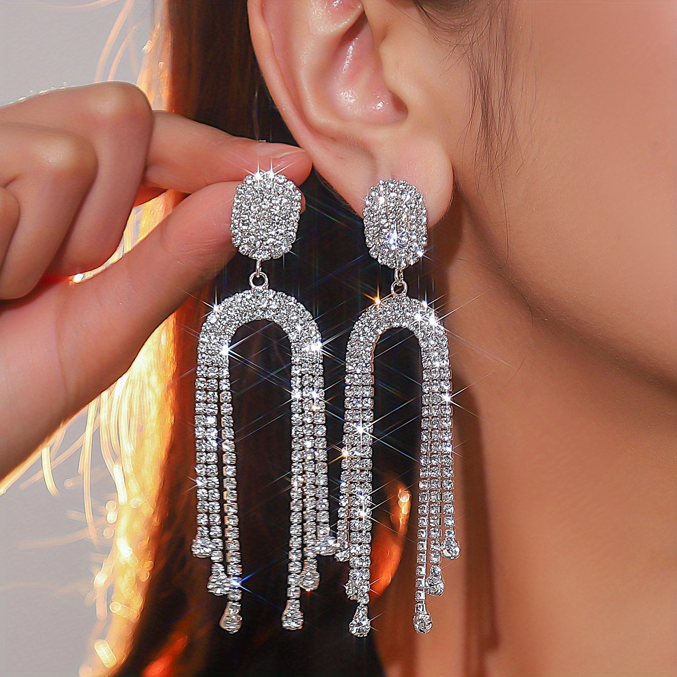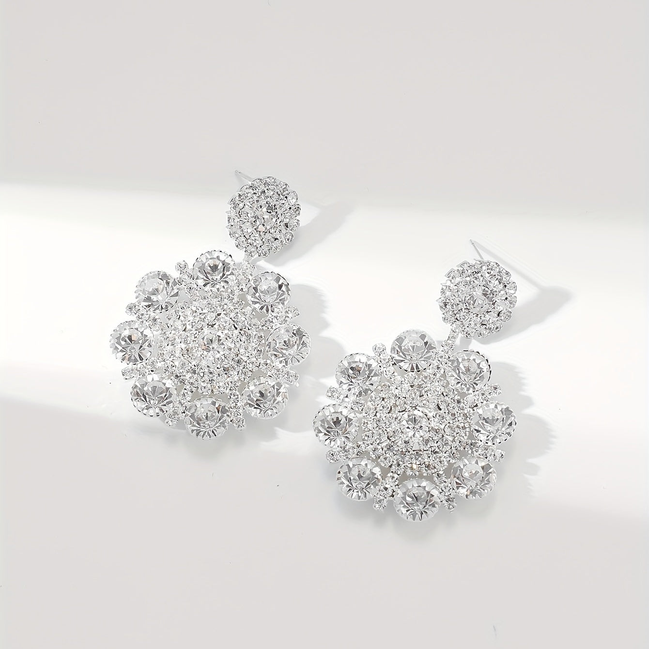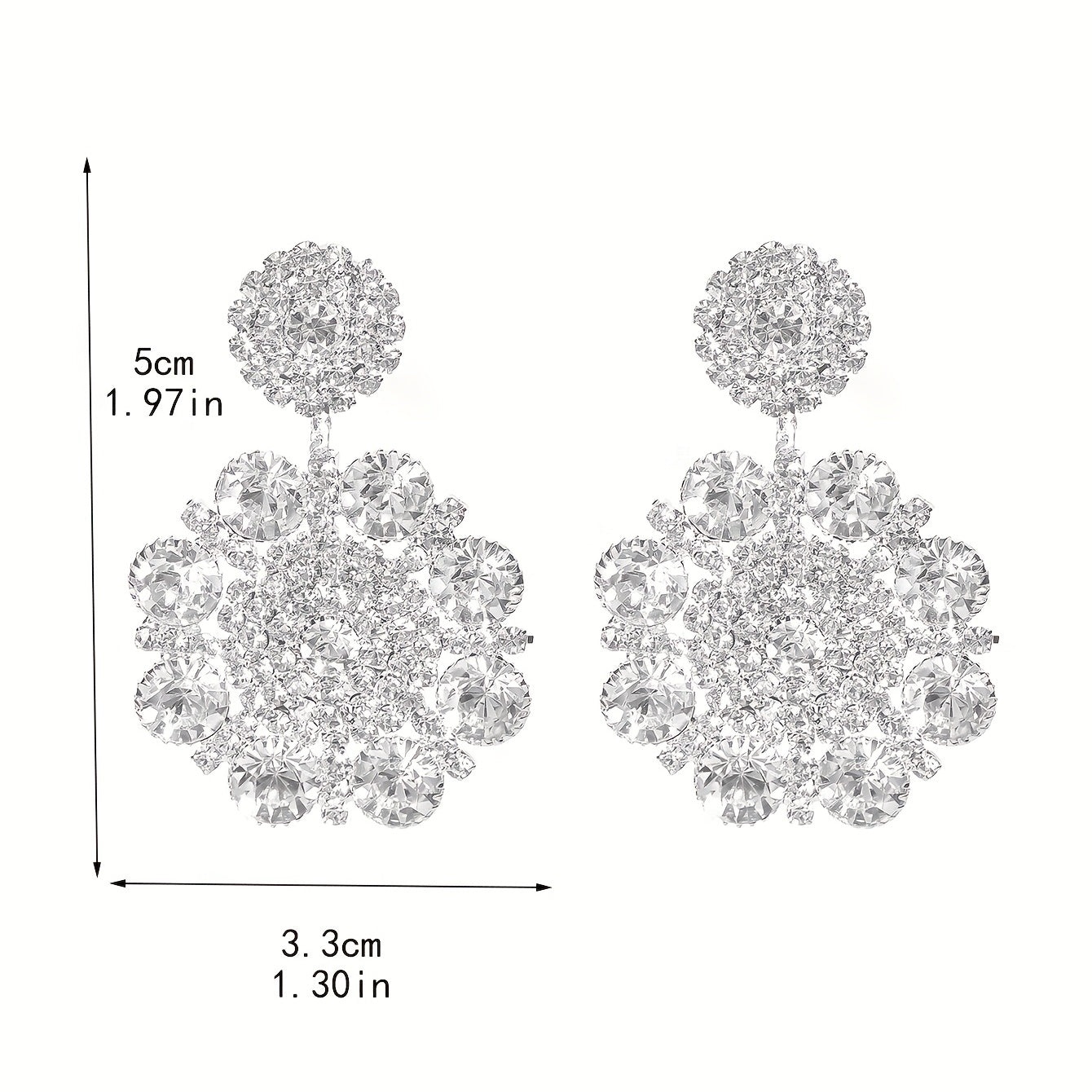Add a touch of glamour with these stunning dangle earrings featuring a full sparkling rhinestone design. Perfect for banquets, parties, or any special occasion.