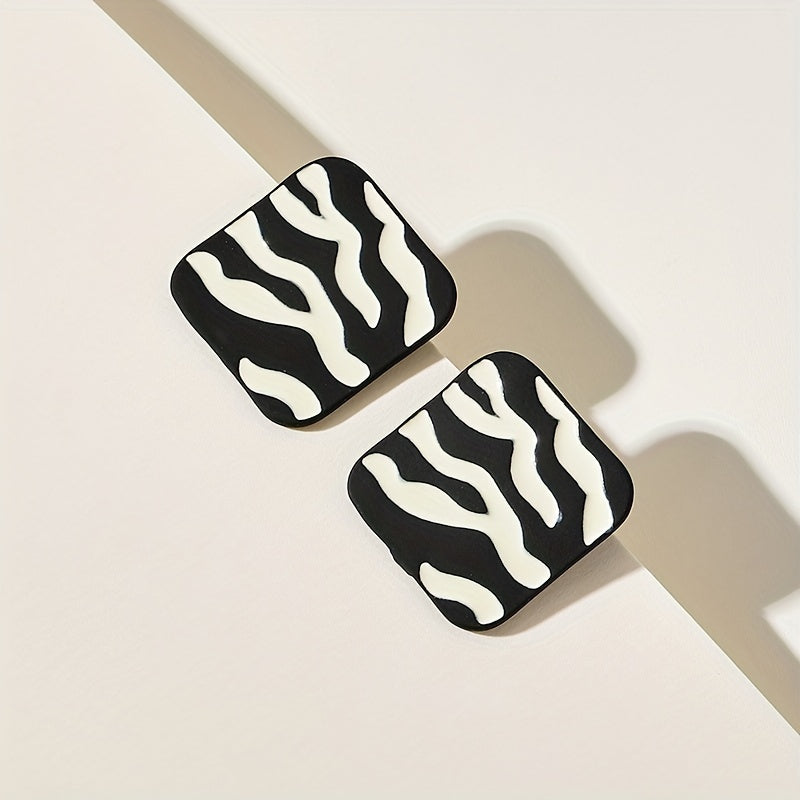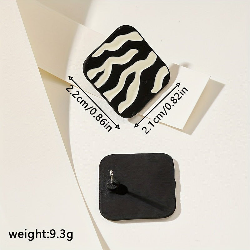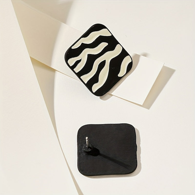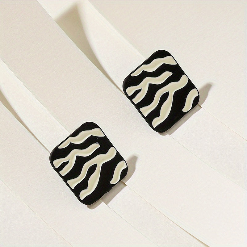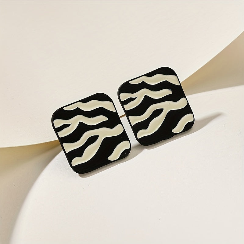 & Stripes Pattern Square Stud Earrings Retro Minimalist Style Zinc Alloy 18K Plated Jewelry Female Gift
