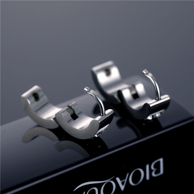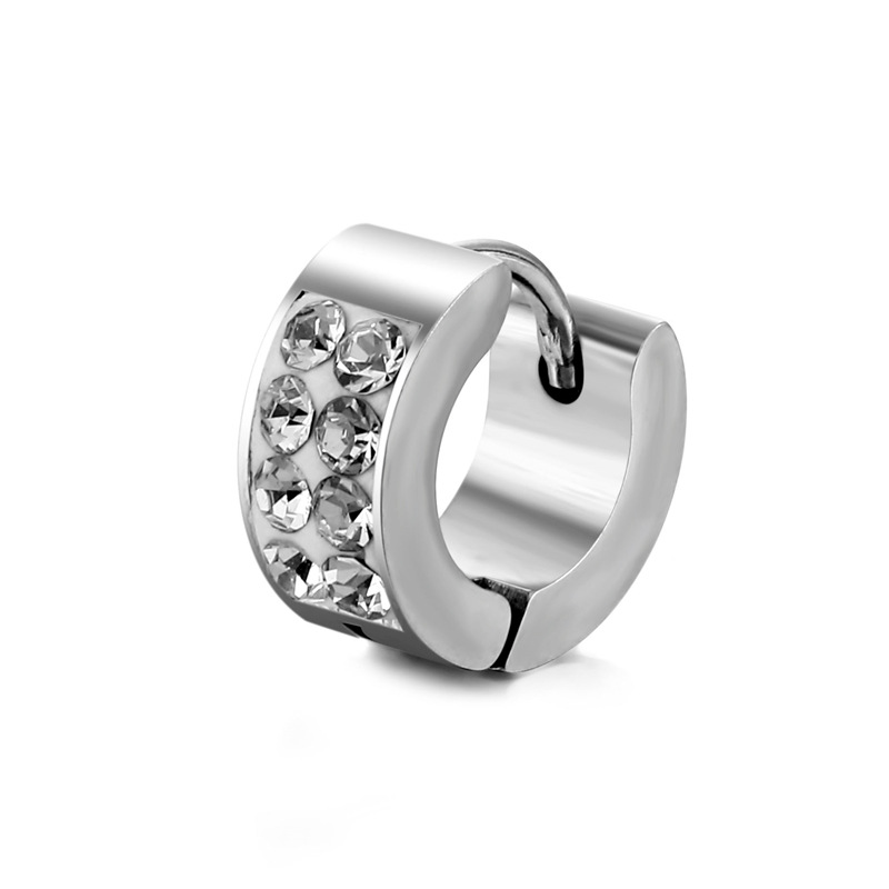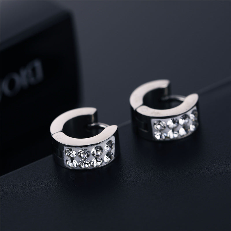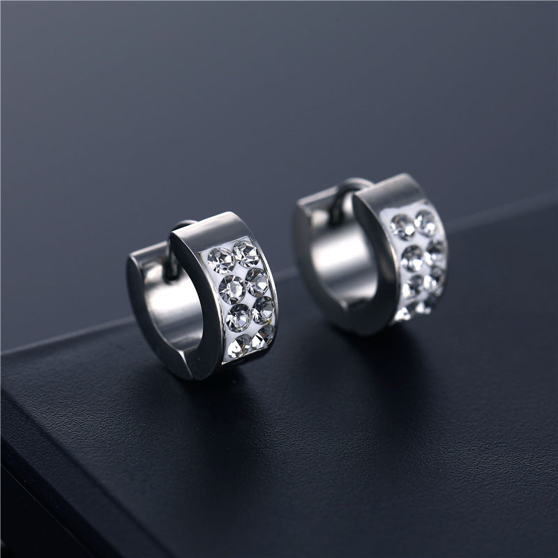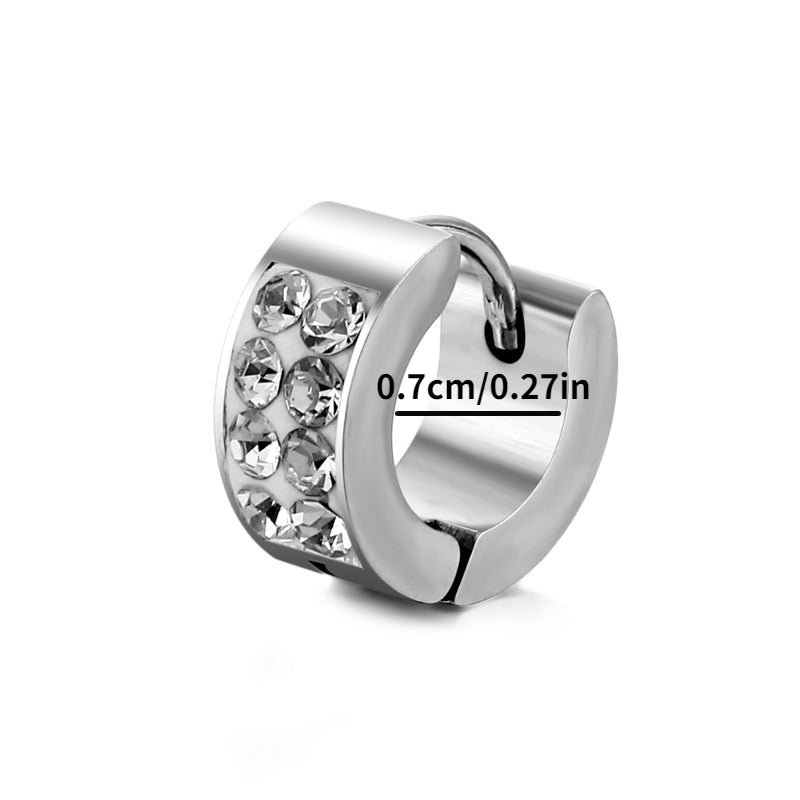 These stylish hoop earrings are crafted from stainless steel and feature artificial diamond inlays. Suitable for both men and women, they add a touch of elegance to any outfit.