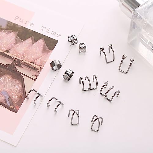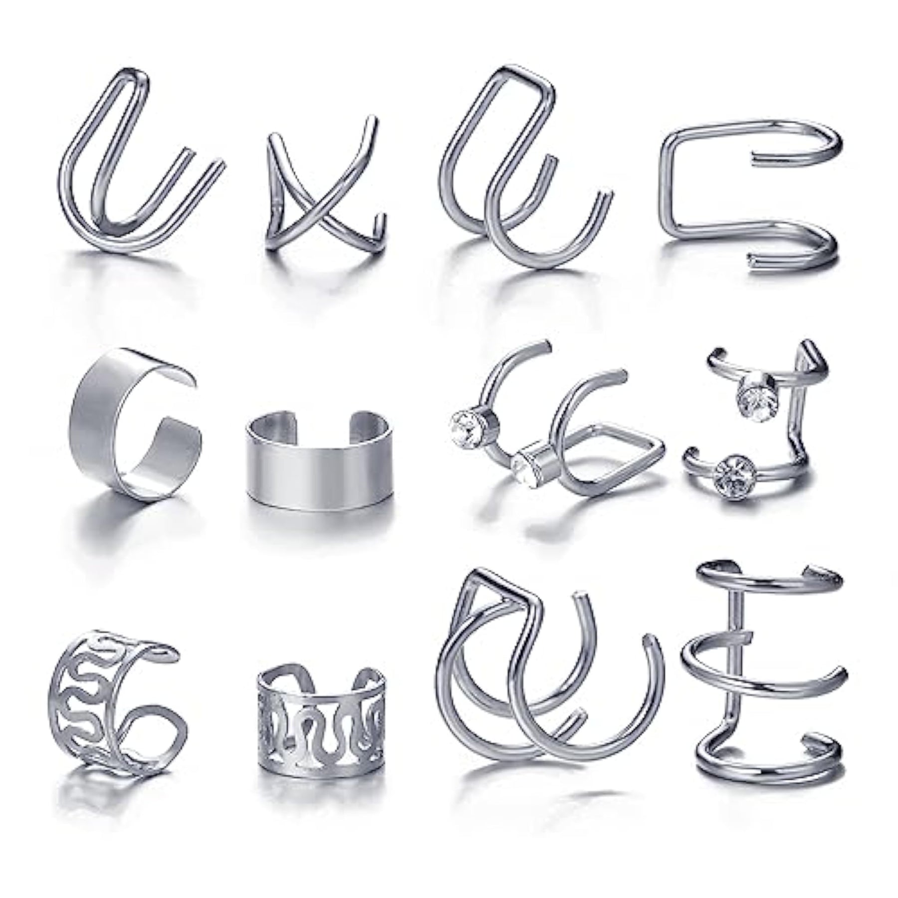 Elevate your style with this 12-piece combo of clip-on ear cuff earrings. Made of high-quality silver metal, these earrings add a touch of sophistication to any outfit.