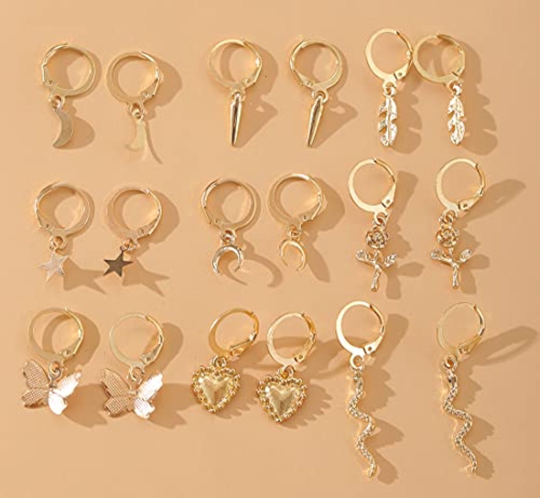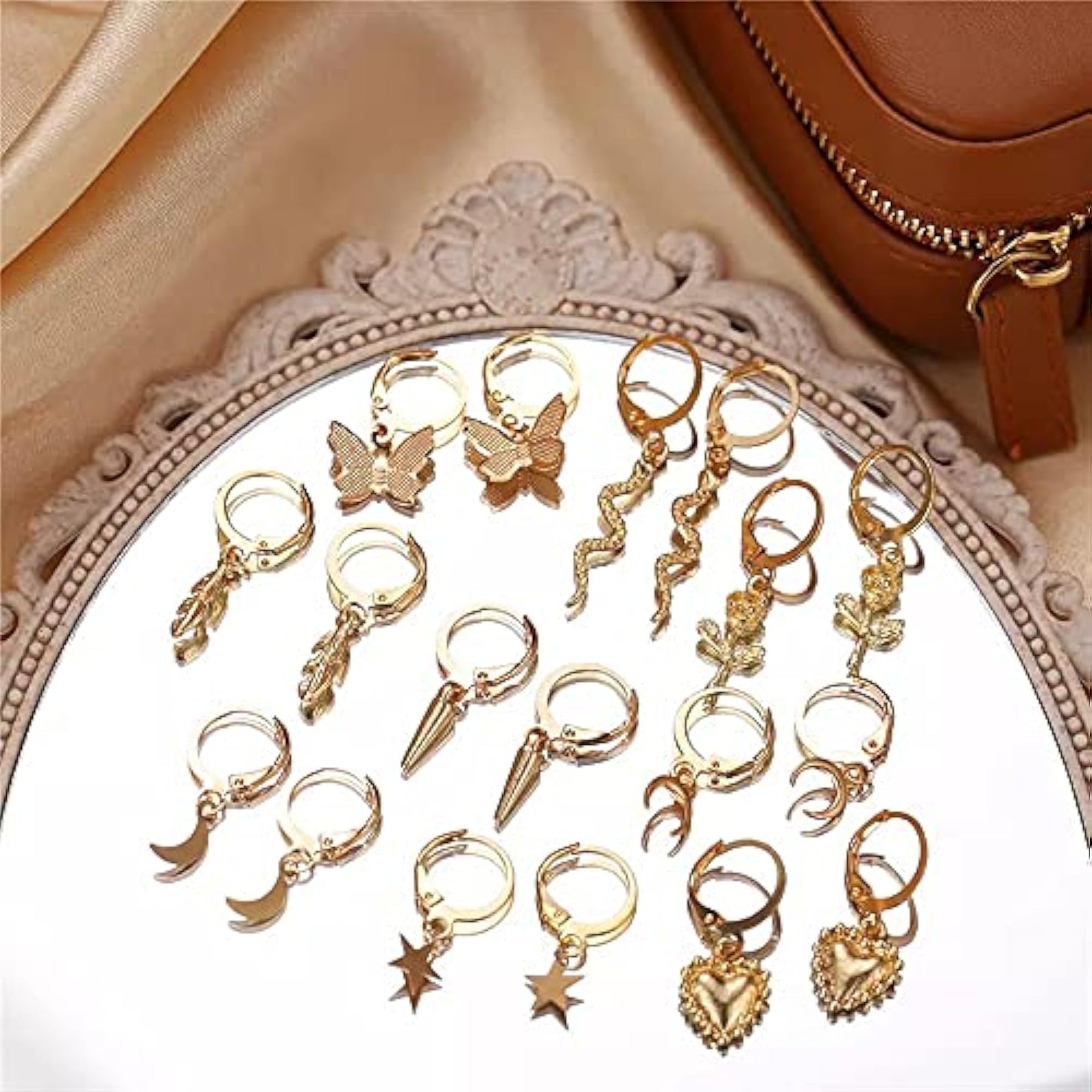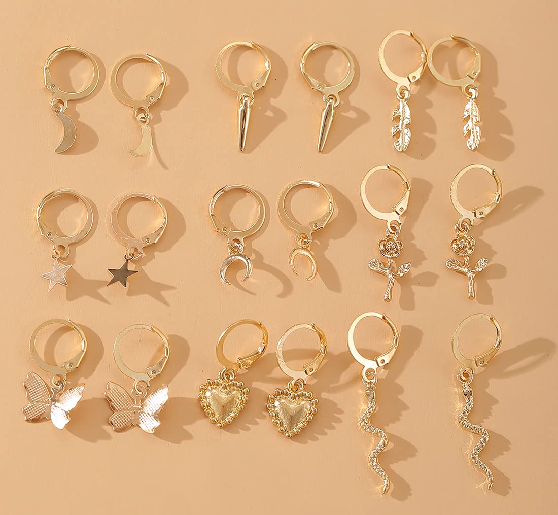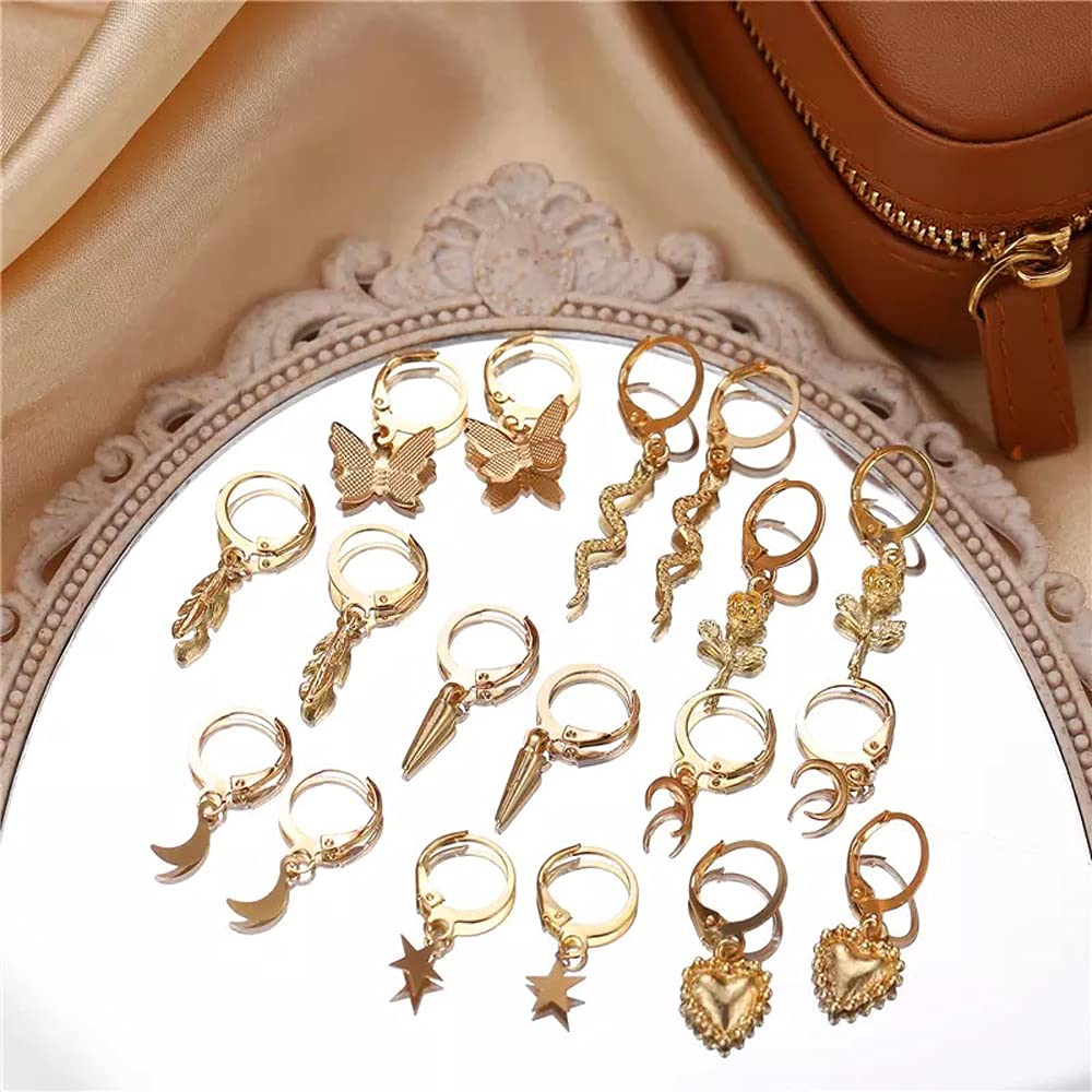 Elevate your style with this set of 9 trendy metal earrings designed for women. These earrings are versatile and perfect for various occasions.