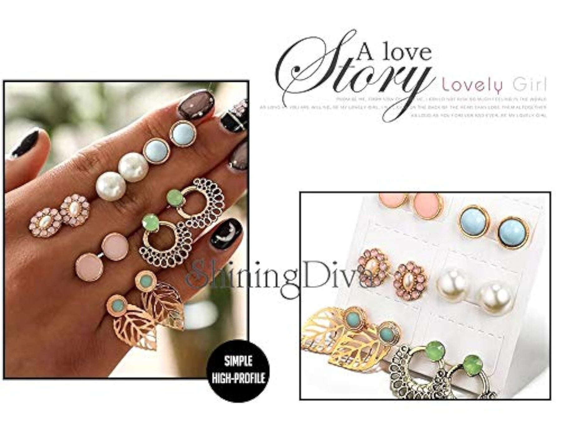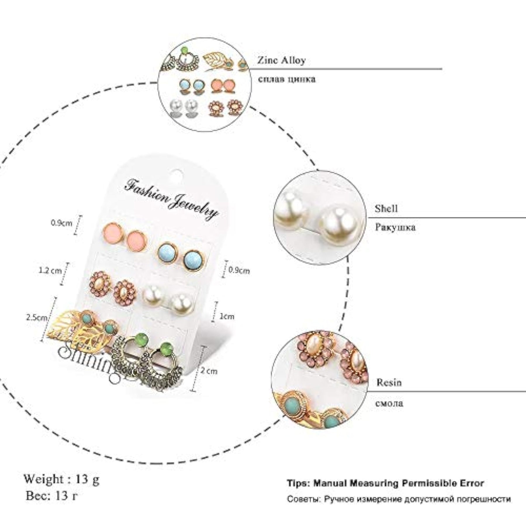Get this set of 6 pairs of non-precious base metal combo stylish pearl stud earrings to add a touch of elegance to your outfit.