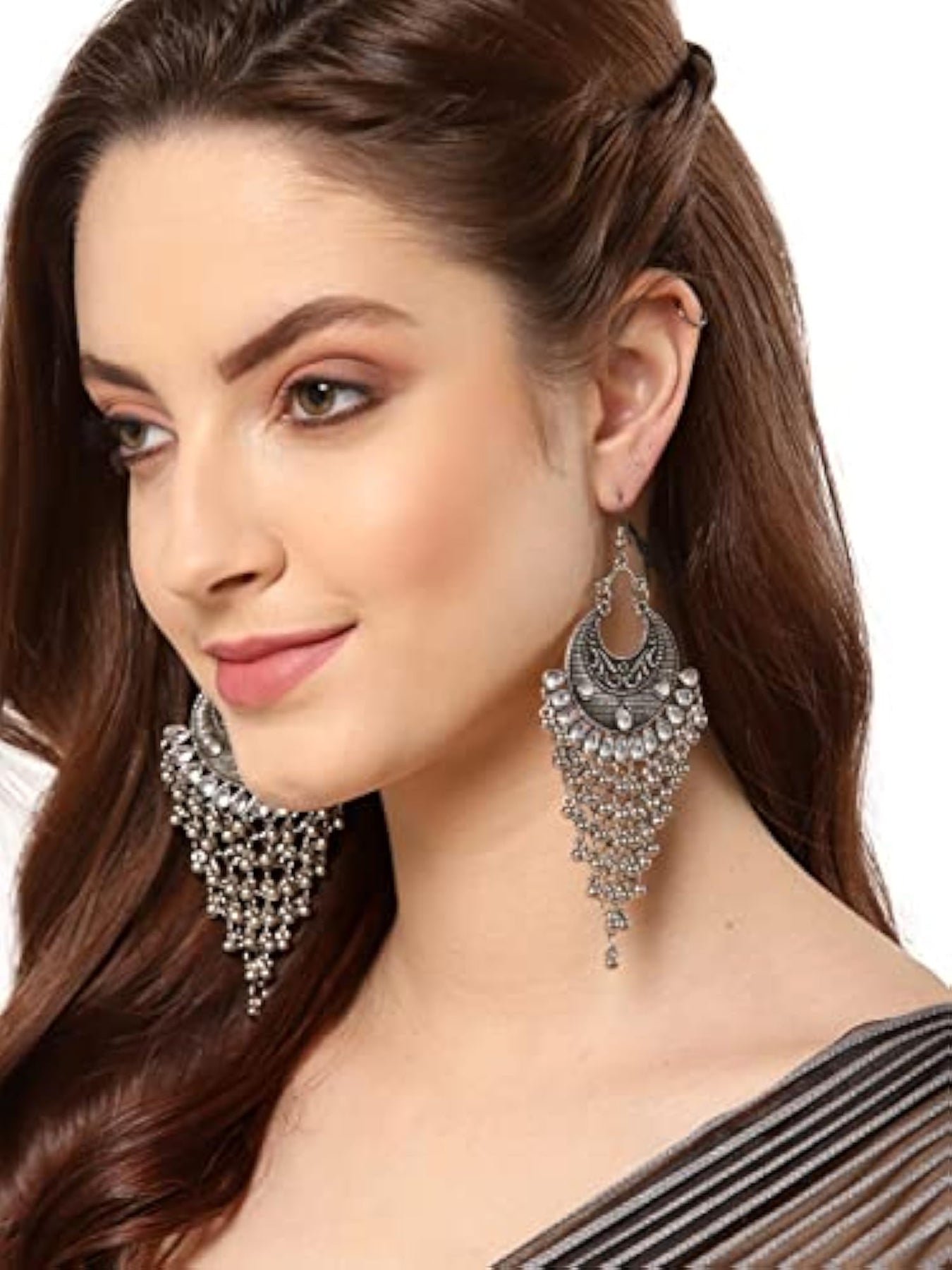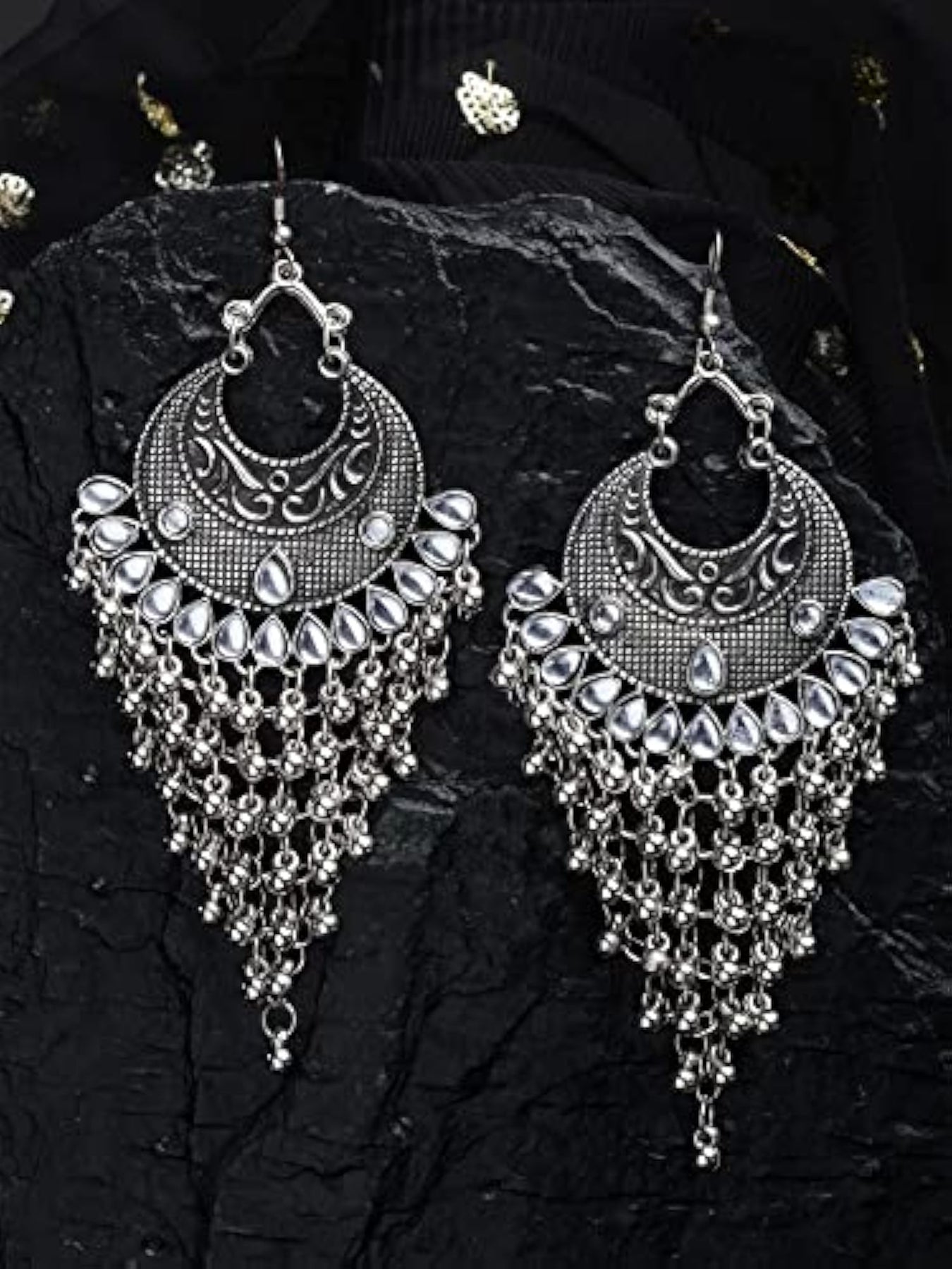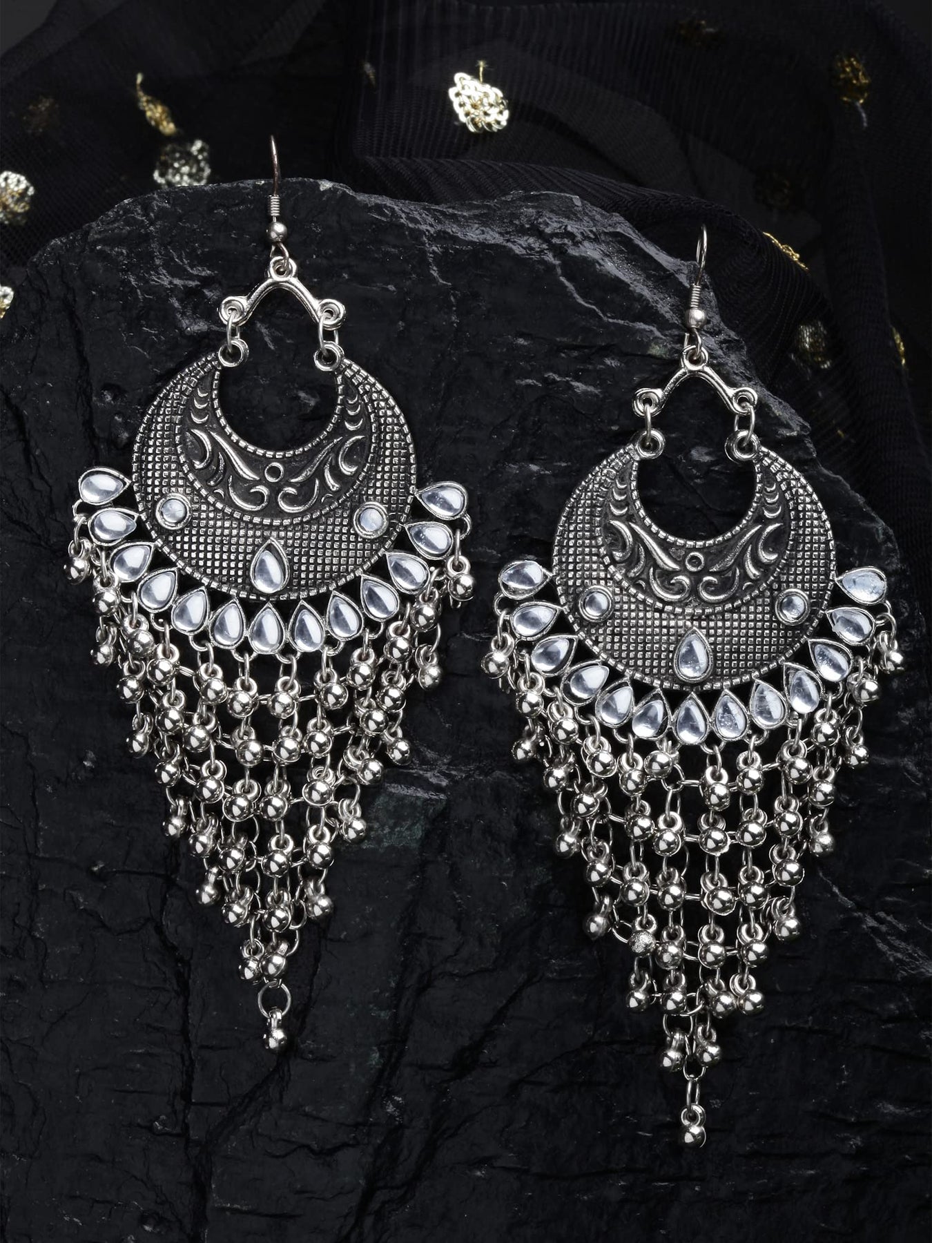 Elegant and trendy oxidised kundan earrings that elevate your style quotient.