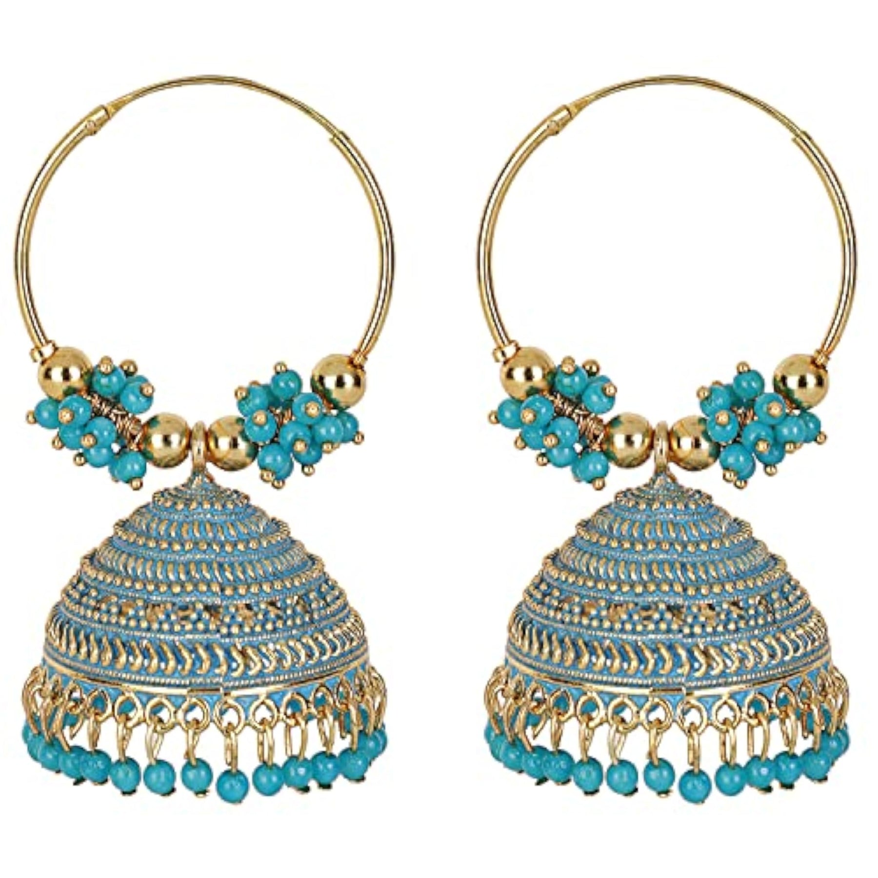 These hoop jhumki earrings are a perfect blend of traditional and modern style. They are intricately designed to add a touch of elegance to any outfit.
