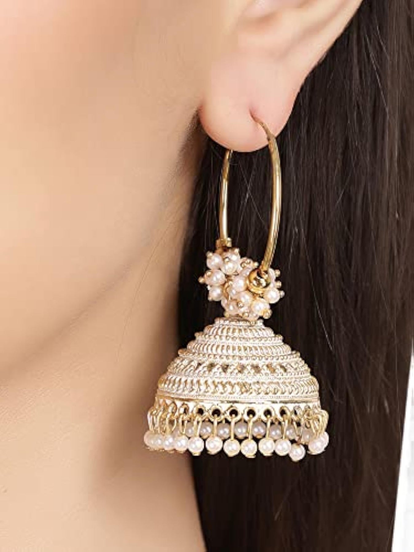 These traditional jhumka jhumki earrings are a perfect blend of style and tradition, adding a touch of elegance to any outfit.