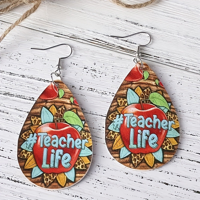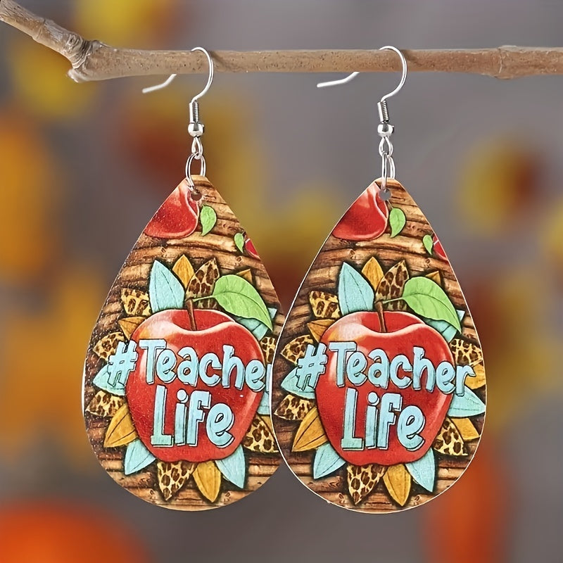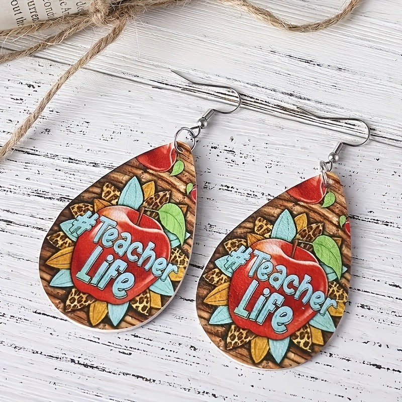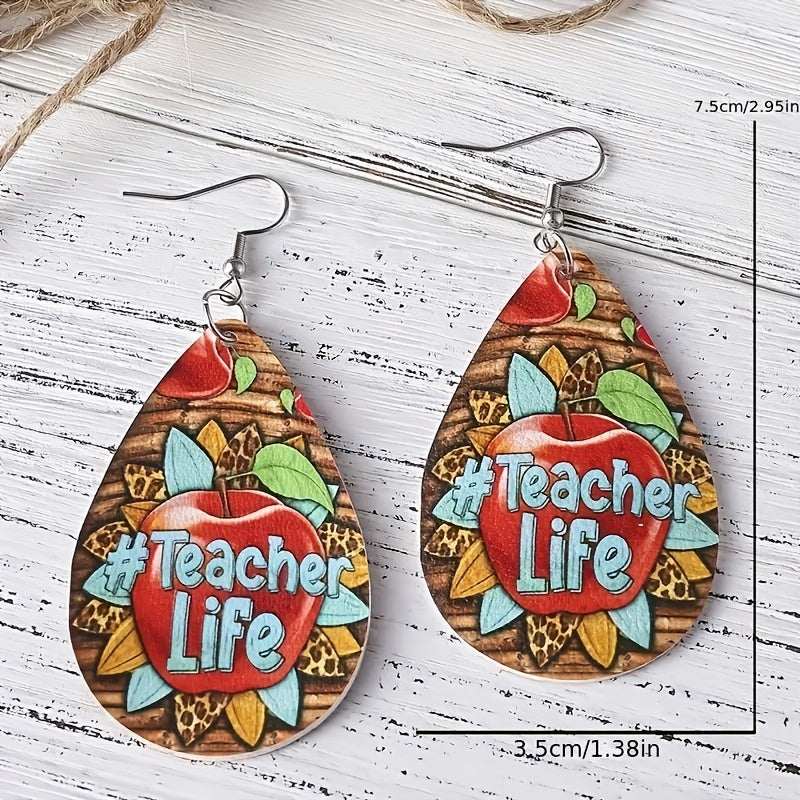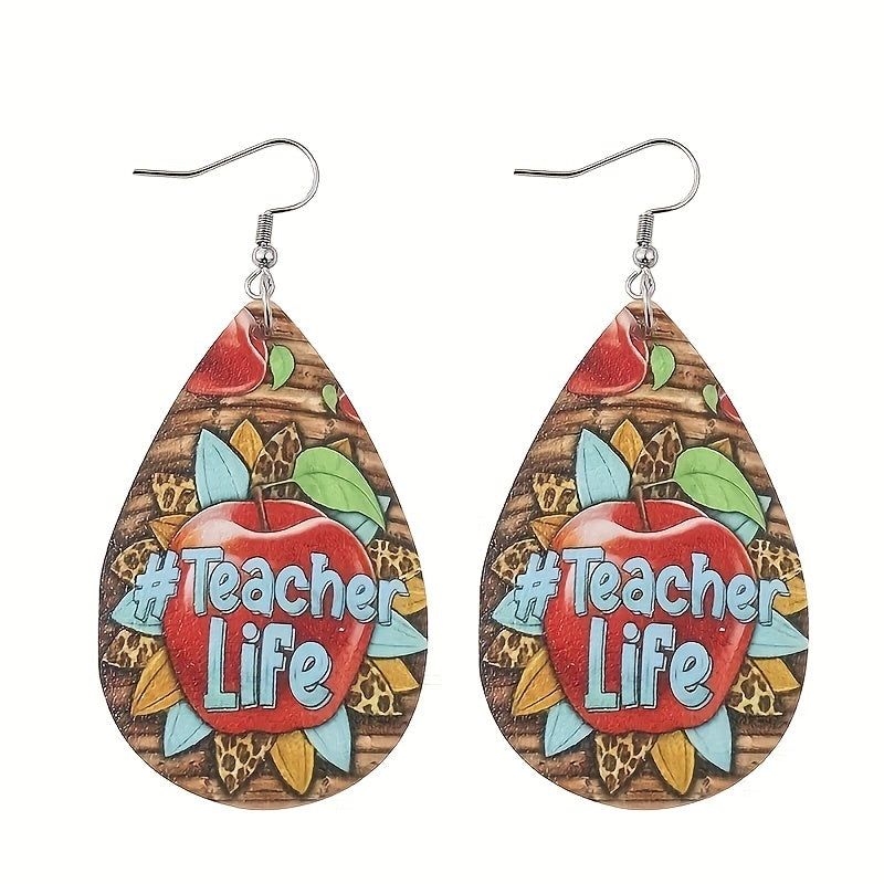 These beautiful drop earrings with sunflower turquoise pattern are made from PU leather. They make a perfect accessory for teachers and men.