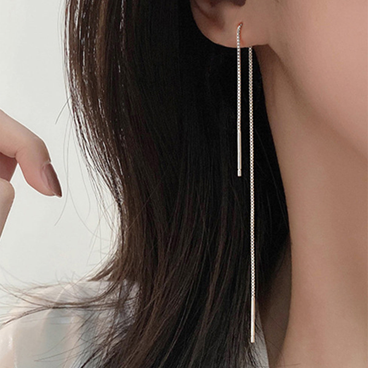 These classic tassel chain linear earrings are a stylish accessory for women and girls. The unique ear threader design adds a modern touch to any outfit.