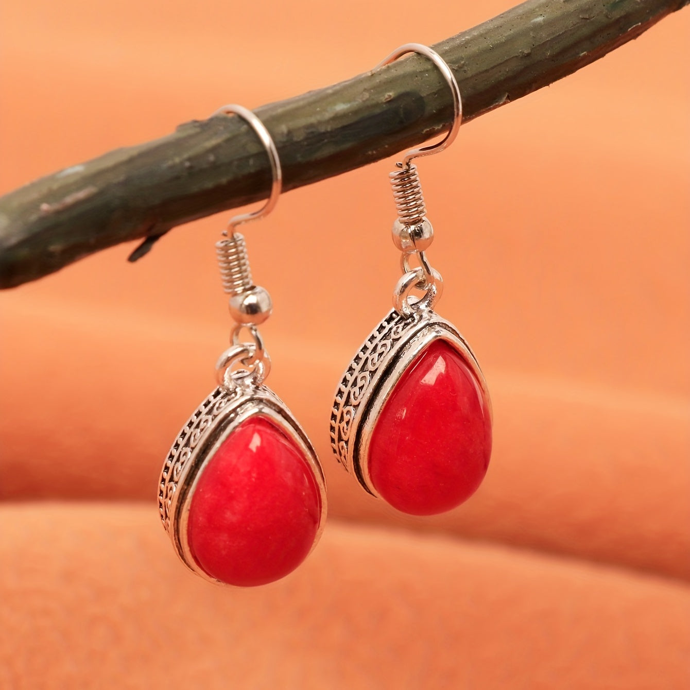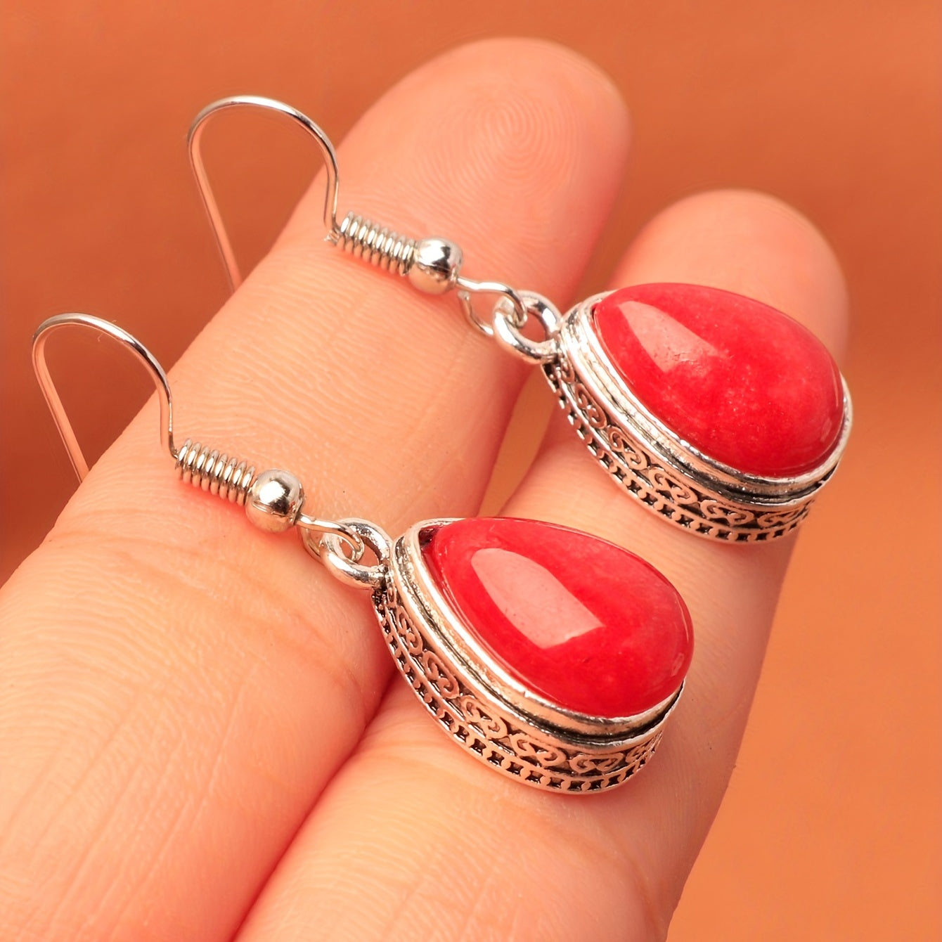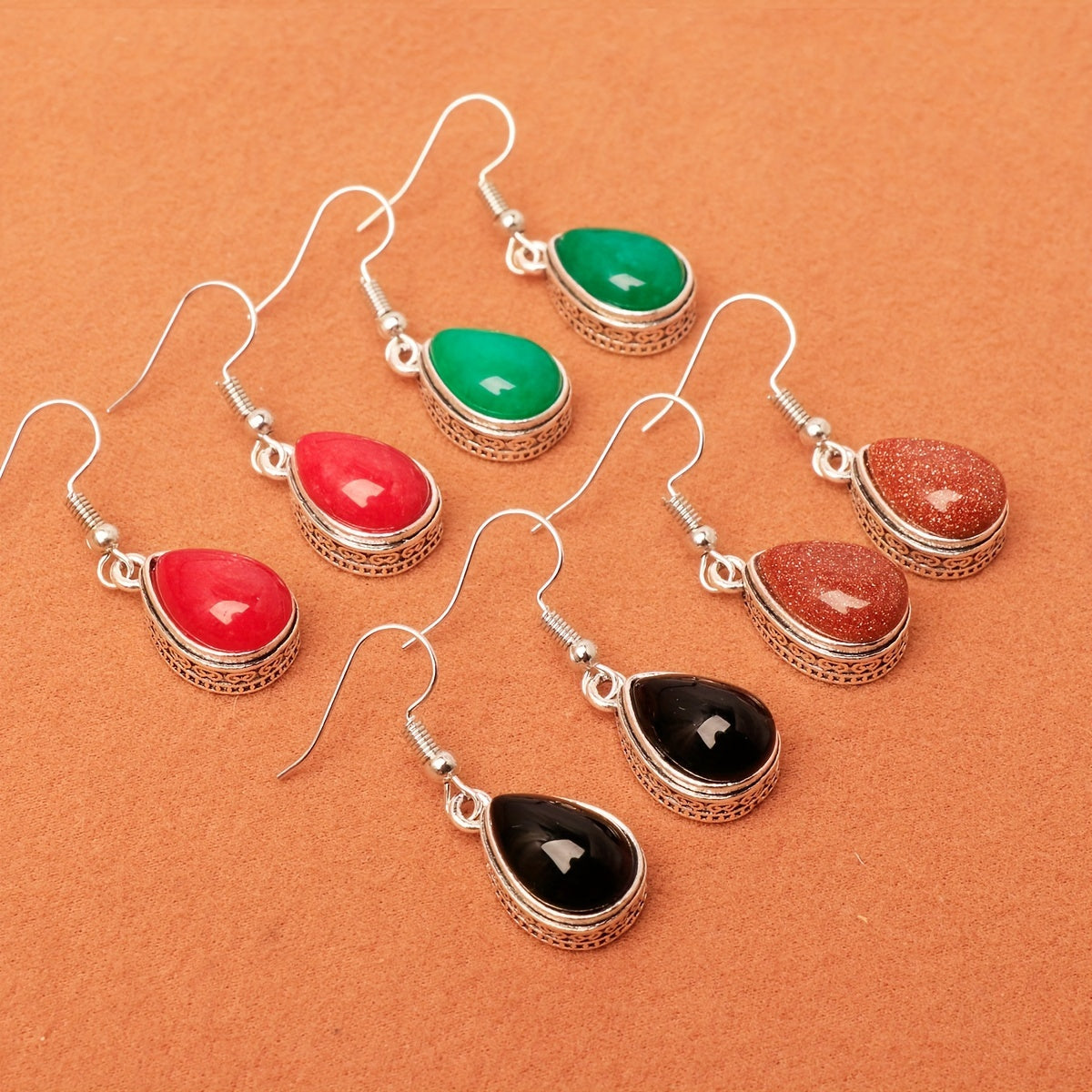 Add an ethnic touch to your style with these teardrop shape natural jade earrings. Made of zinc alloy, these earrings make a perfect gift for women and girls.