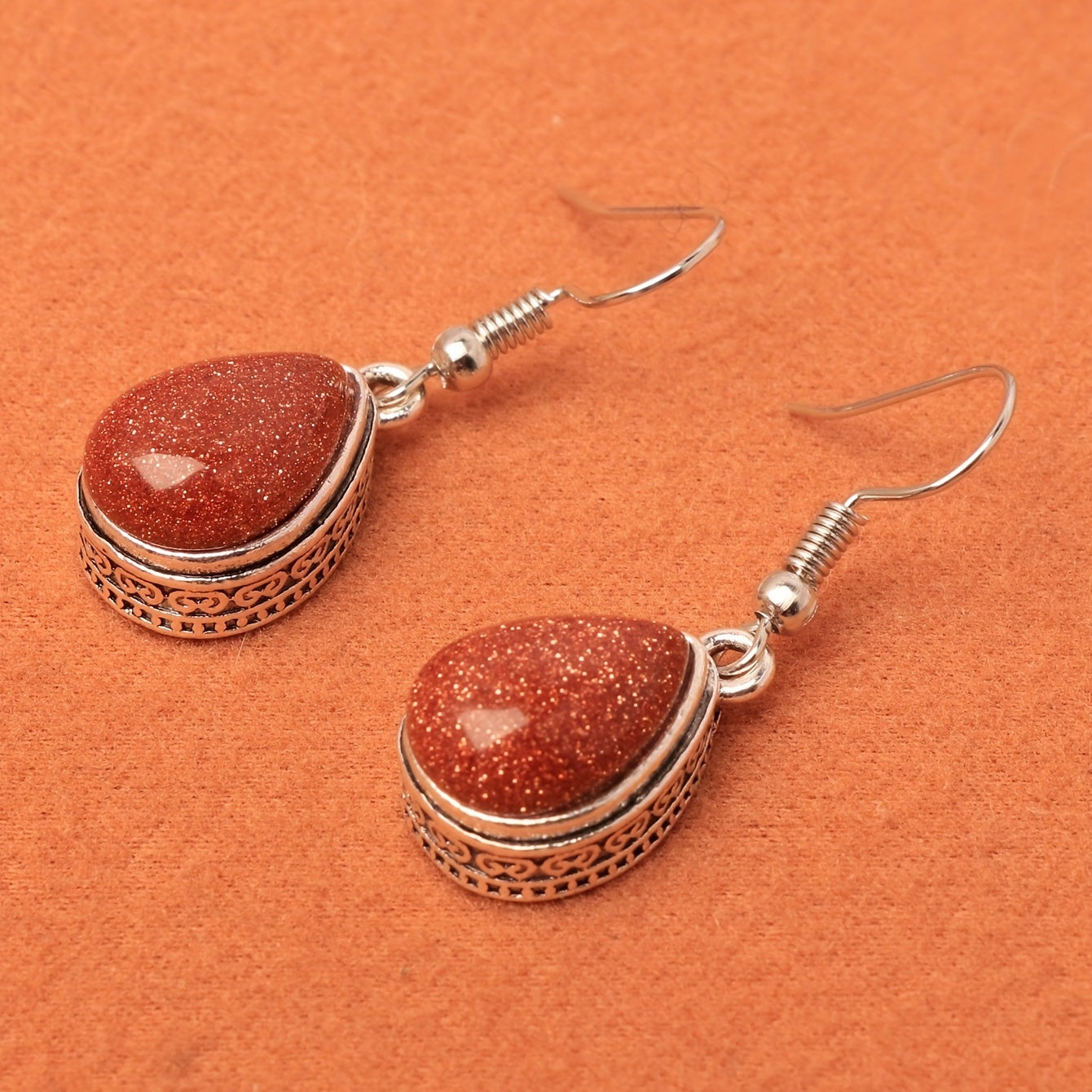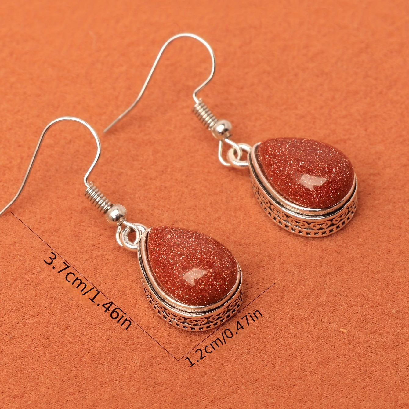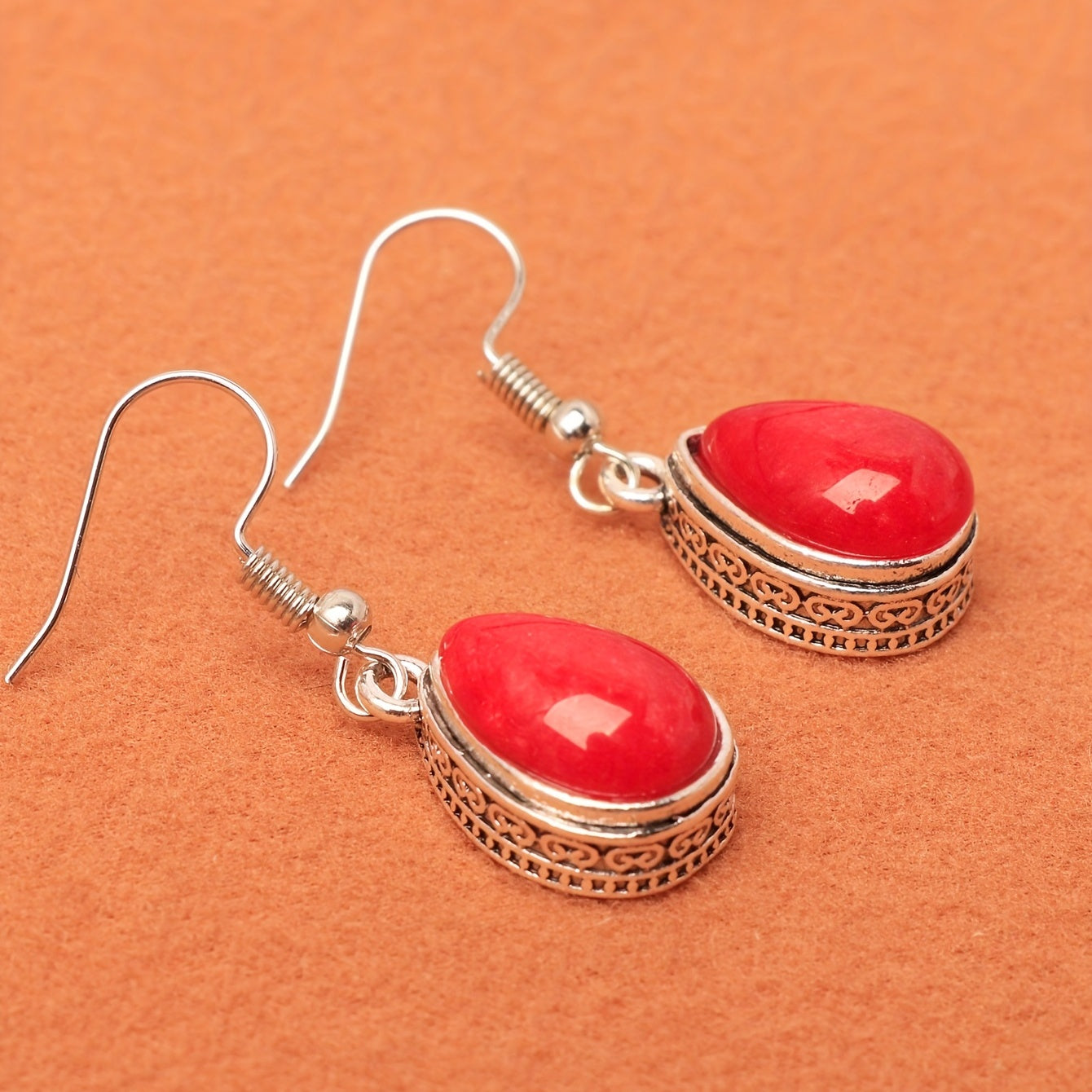 Add an ethnic touch to your style with these teardrop shape natural jade earrings. Made of zinc alloy, these earrings make a perfect gift for women and girls.