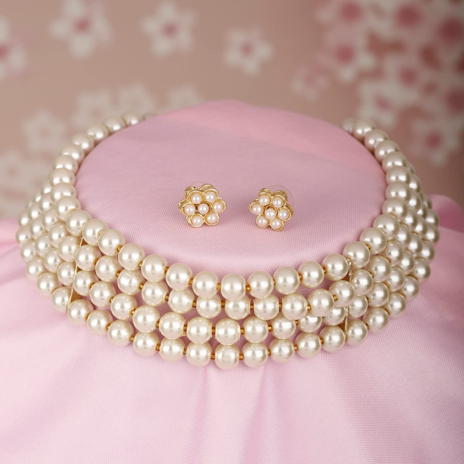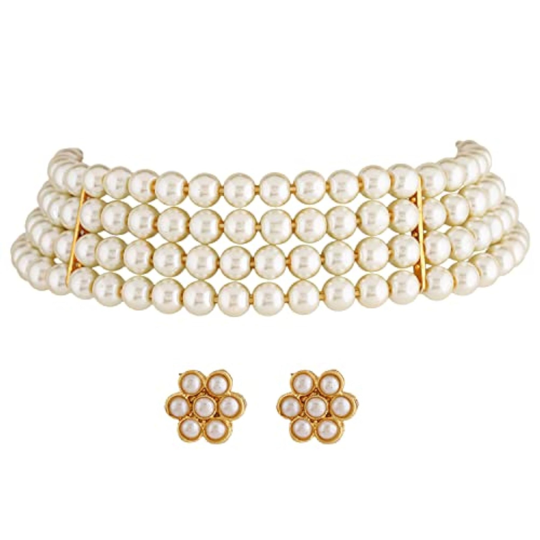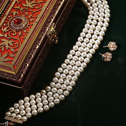 Enhance your outfit with this stylish pearl choker necklace set, perfect for both formal and casual occasions.