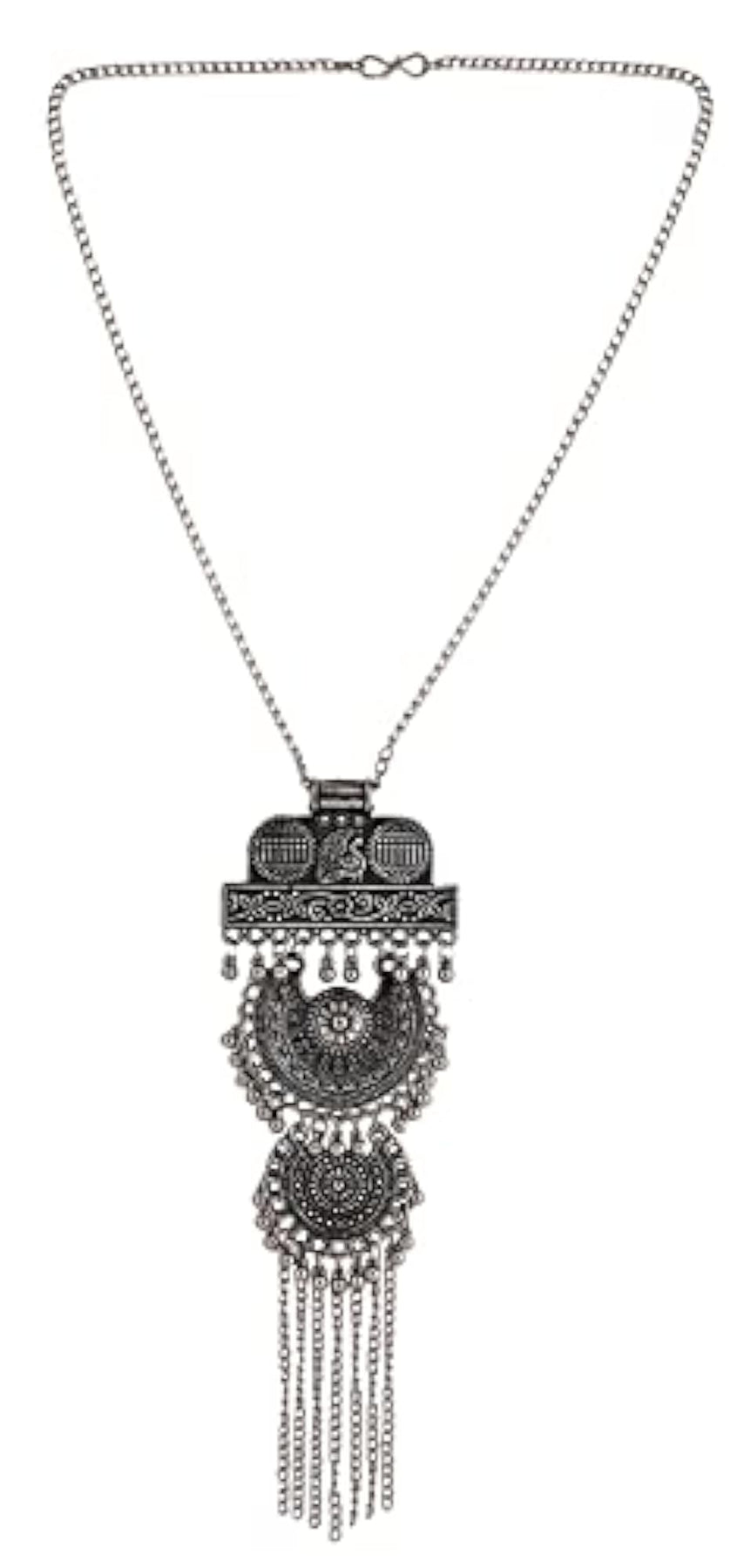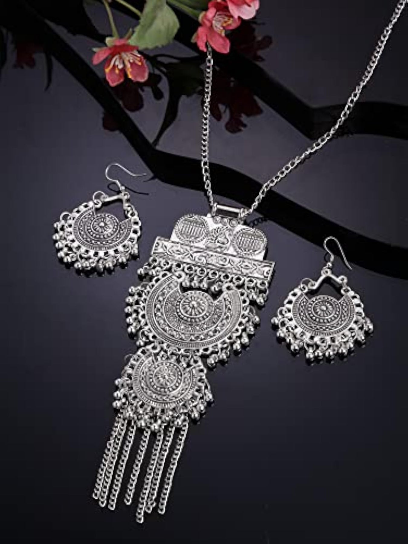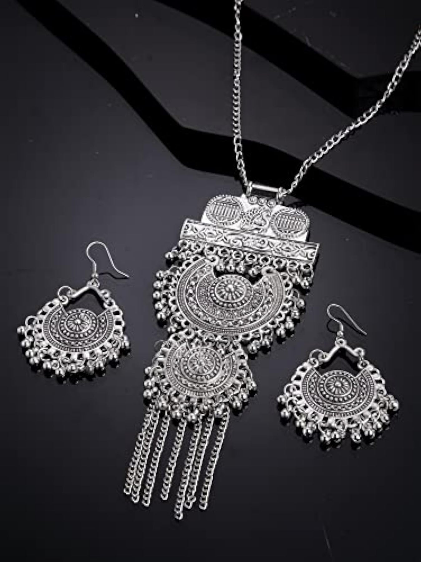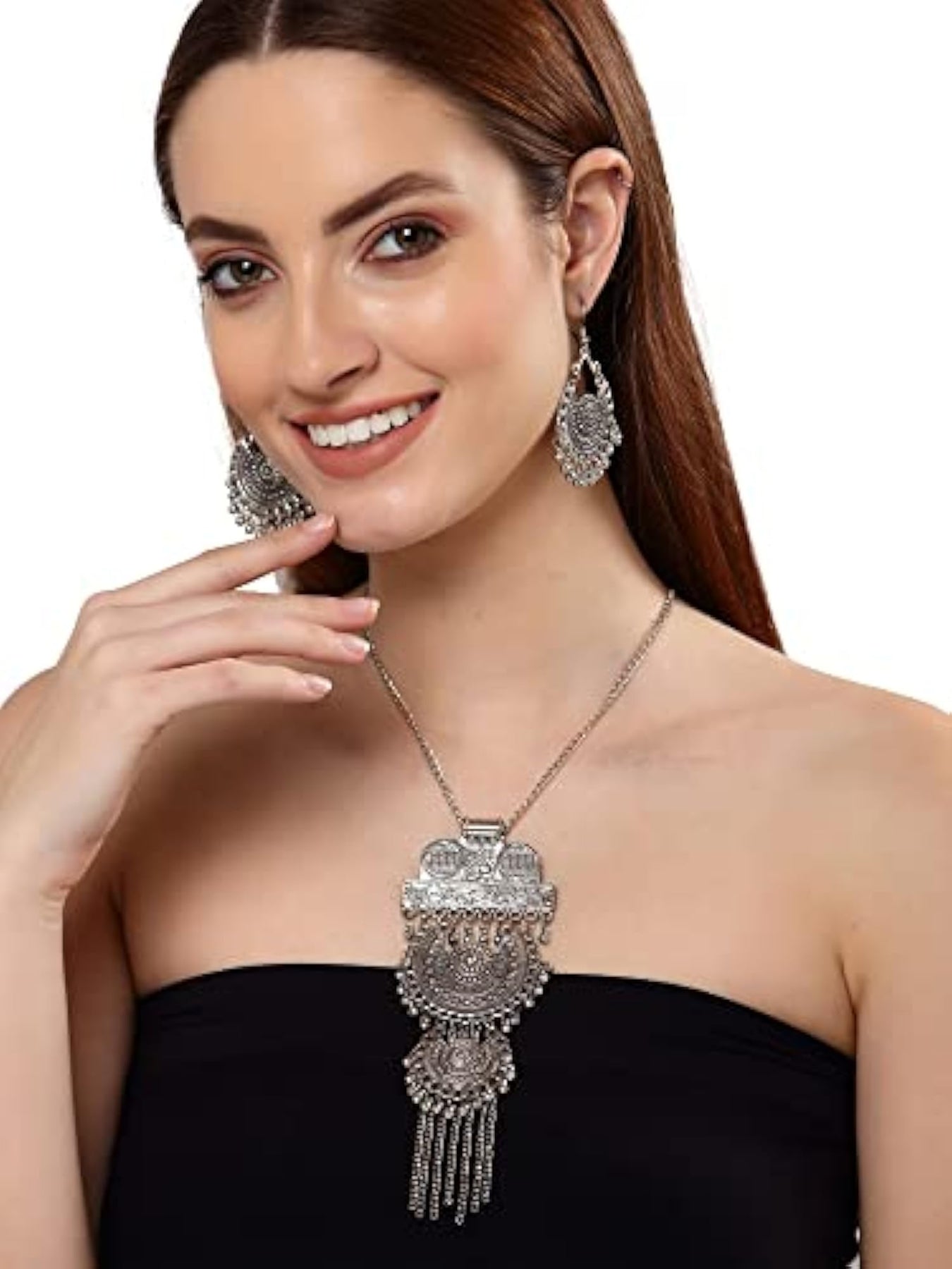Enhance your look with this beautiful oxidised necklace set featuring a traditional design that adds elegance to any outfit.