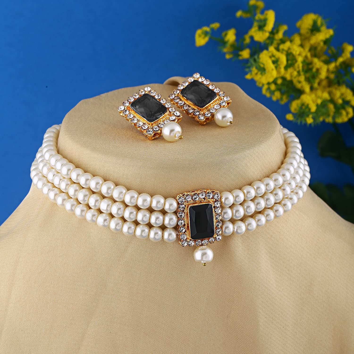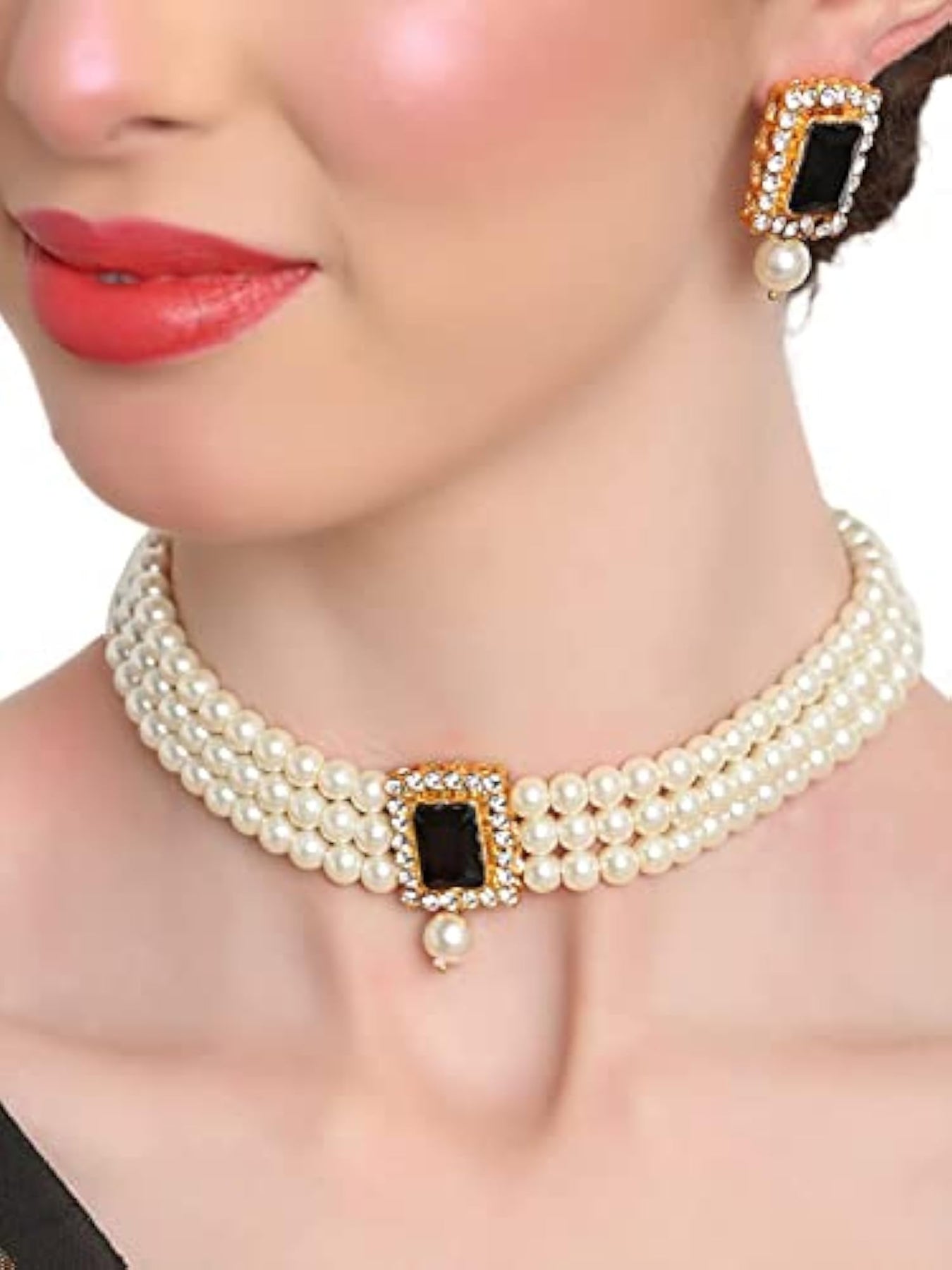 Elevate your traditional look with this stunning choker pearl necklace set.