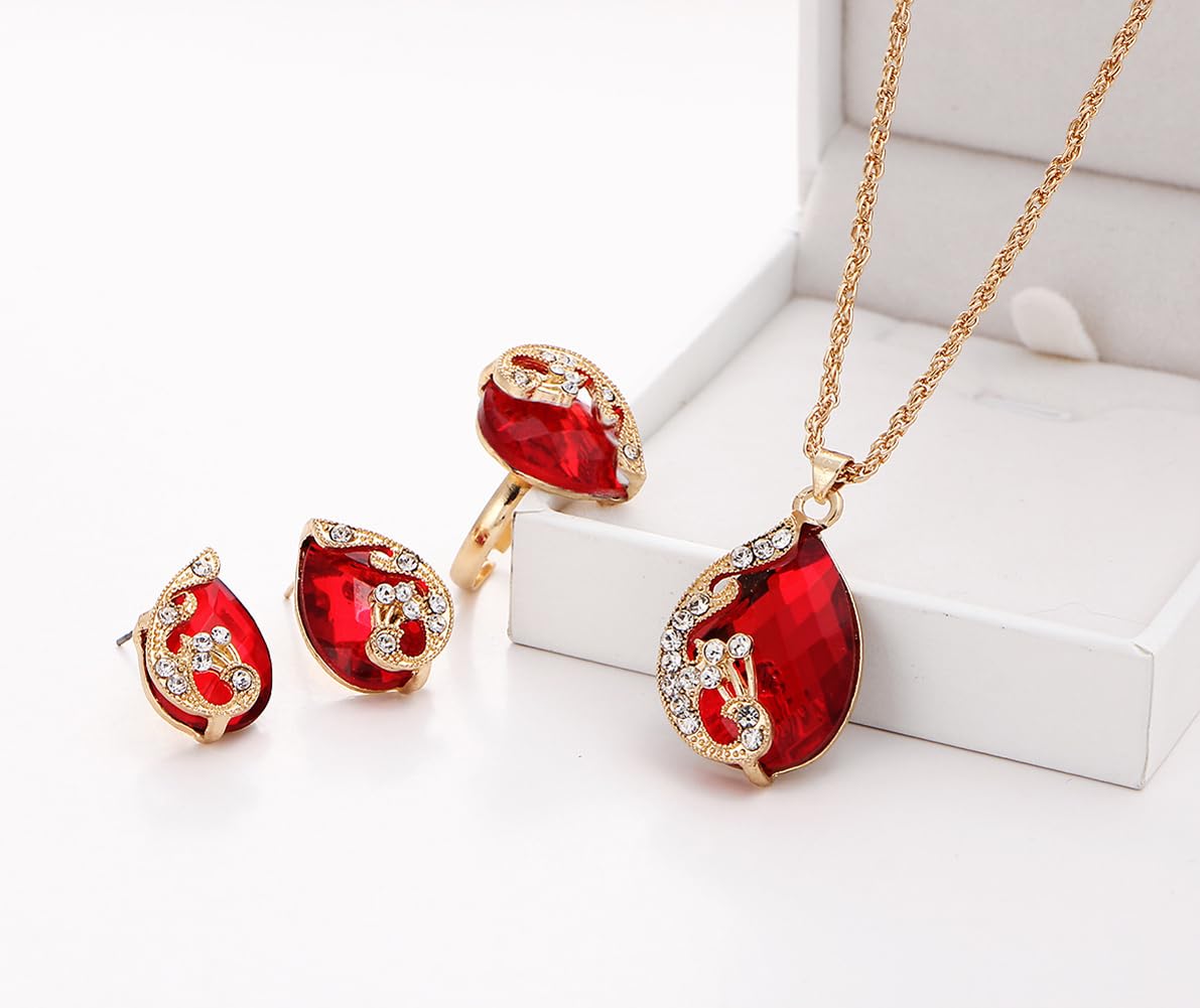 Complete your look with this elegant jewellery set featuring crystal ring, earrings, and necklace.