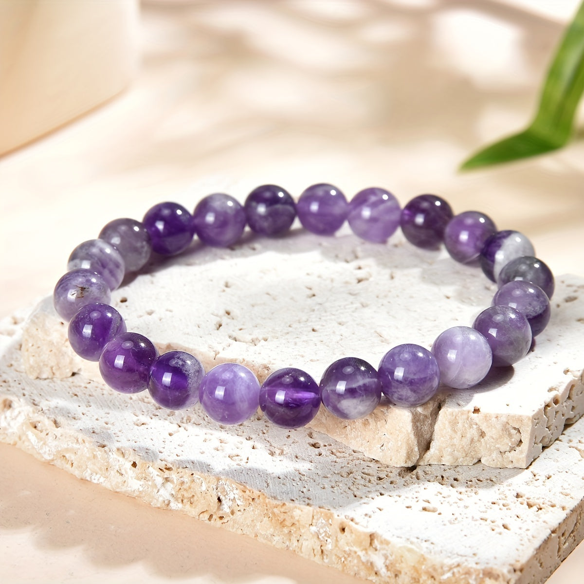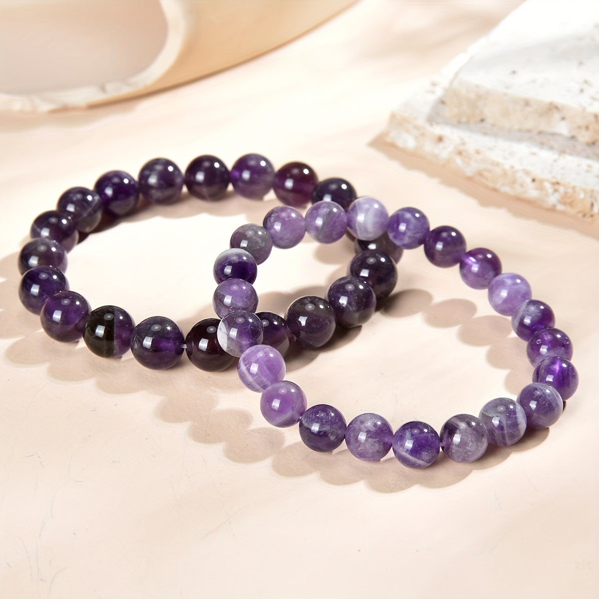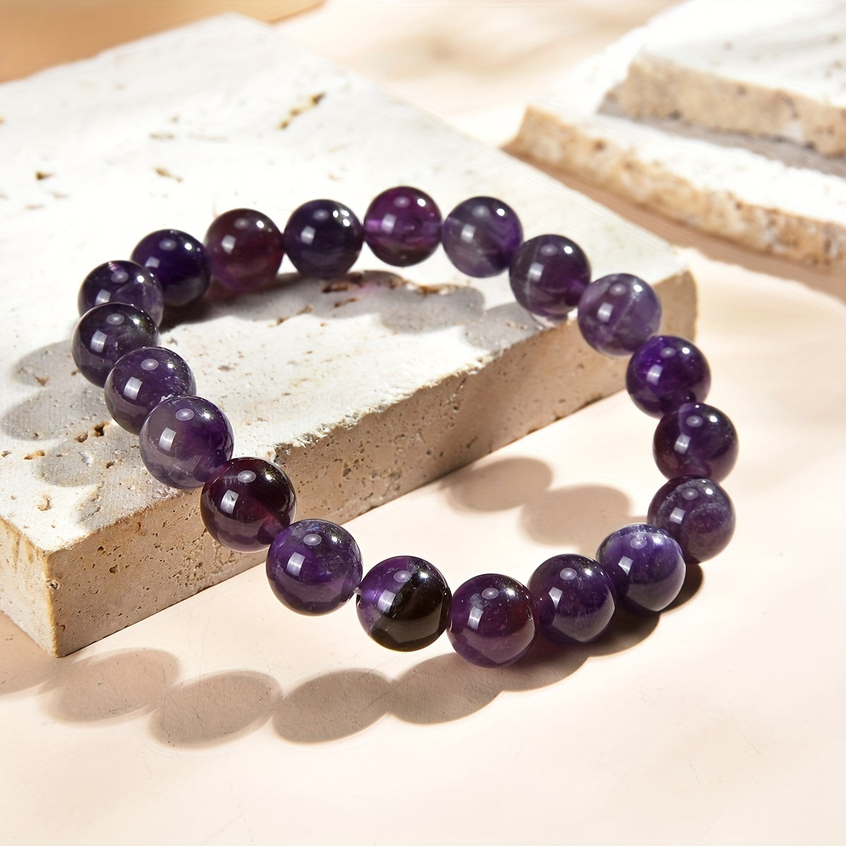 This stunning 10mm Amethyst bead bracelet is made of natural stone. It is a perfect gift for any occasion.