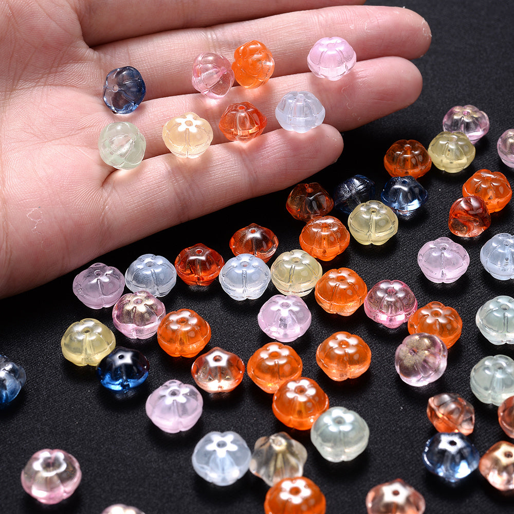 Add a touch of sweetness to your crafts with these transparent pumpkin beads. Perfect for making keychains, earrings, and other needlework projects. Ideal for gifting to girls who love DIY.