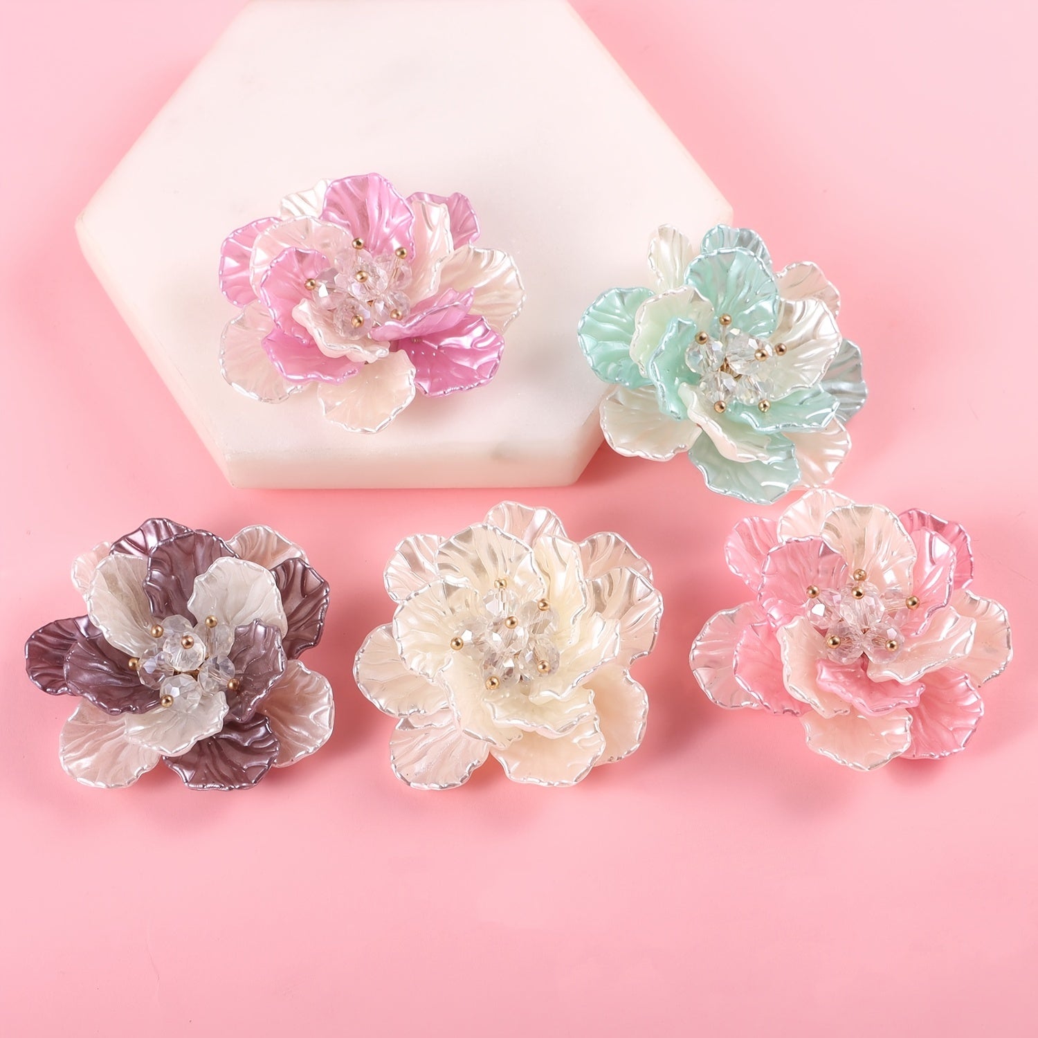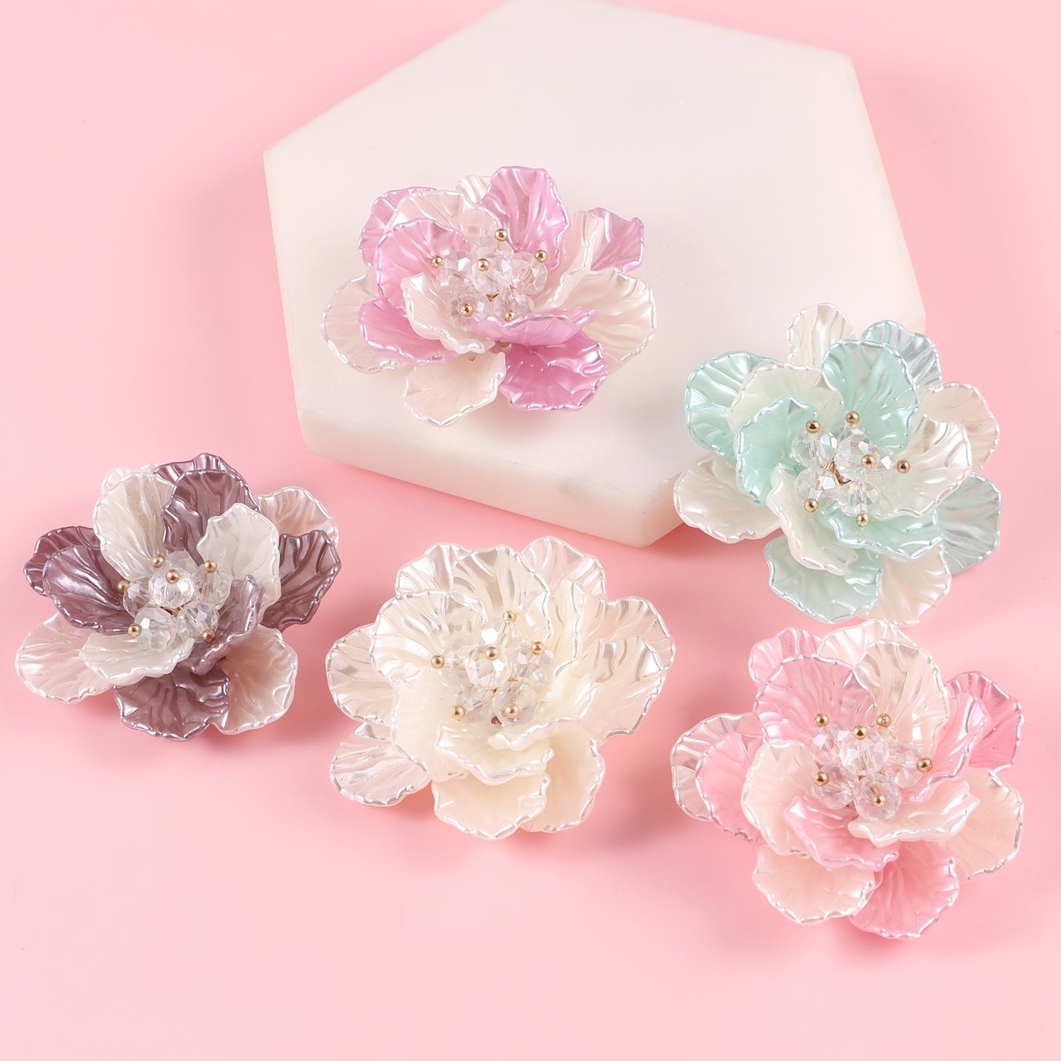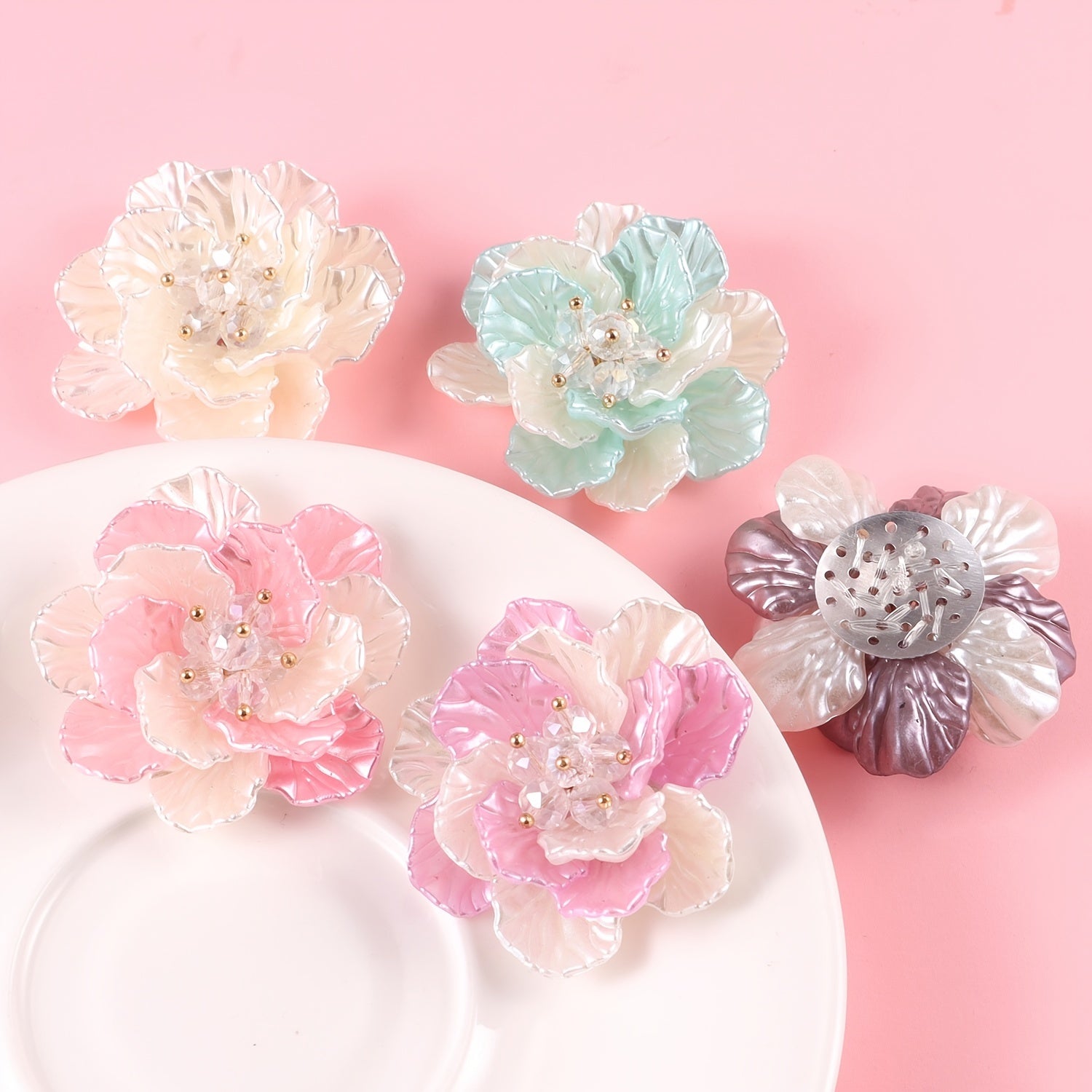 1pc Plastic ABS Pearl Flower Two Tone Accessory