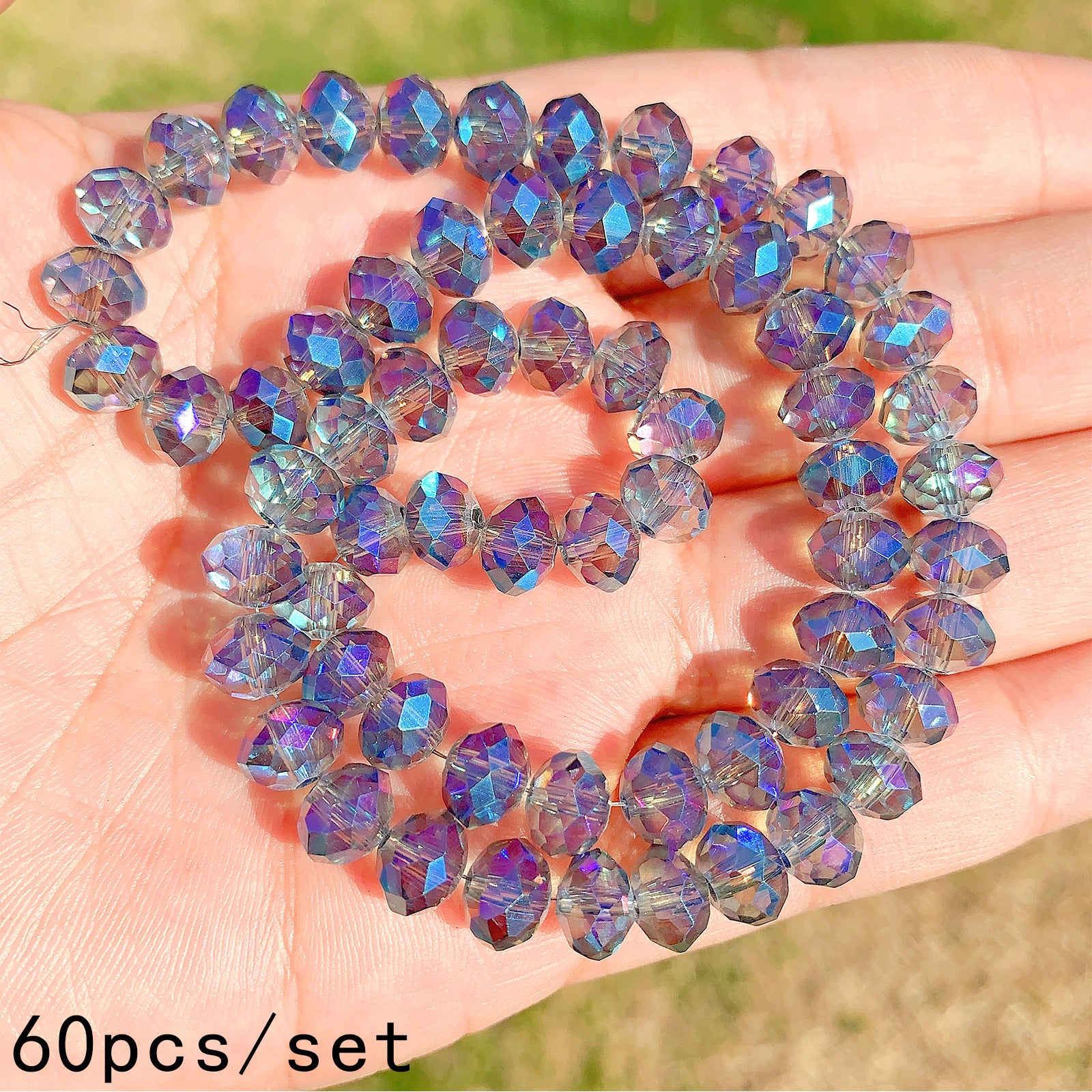 This set includes plated AB crystal faceted glass beads that can be used as spacer beads for making jewelry. Perfect for DIY bracelet projects.