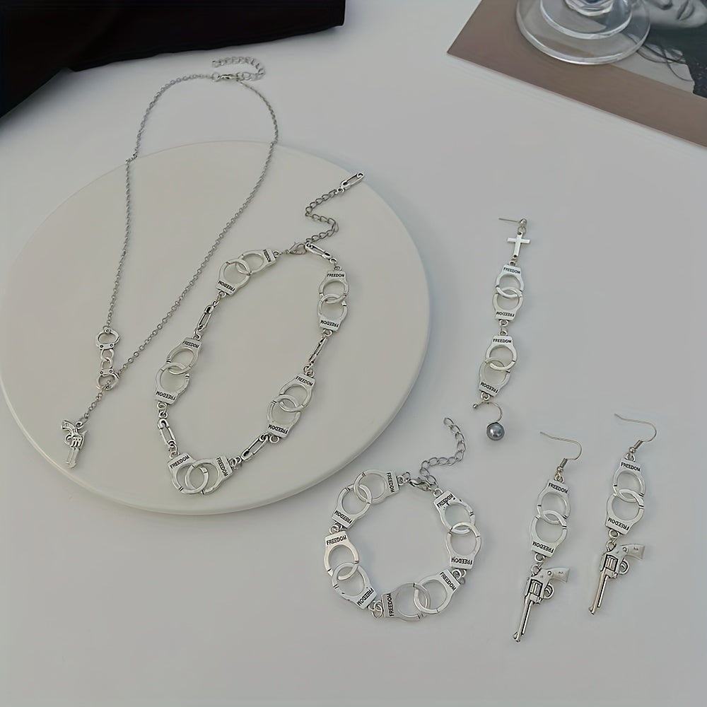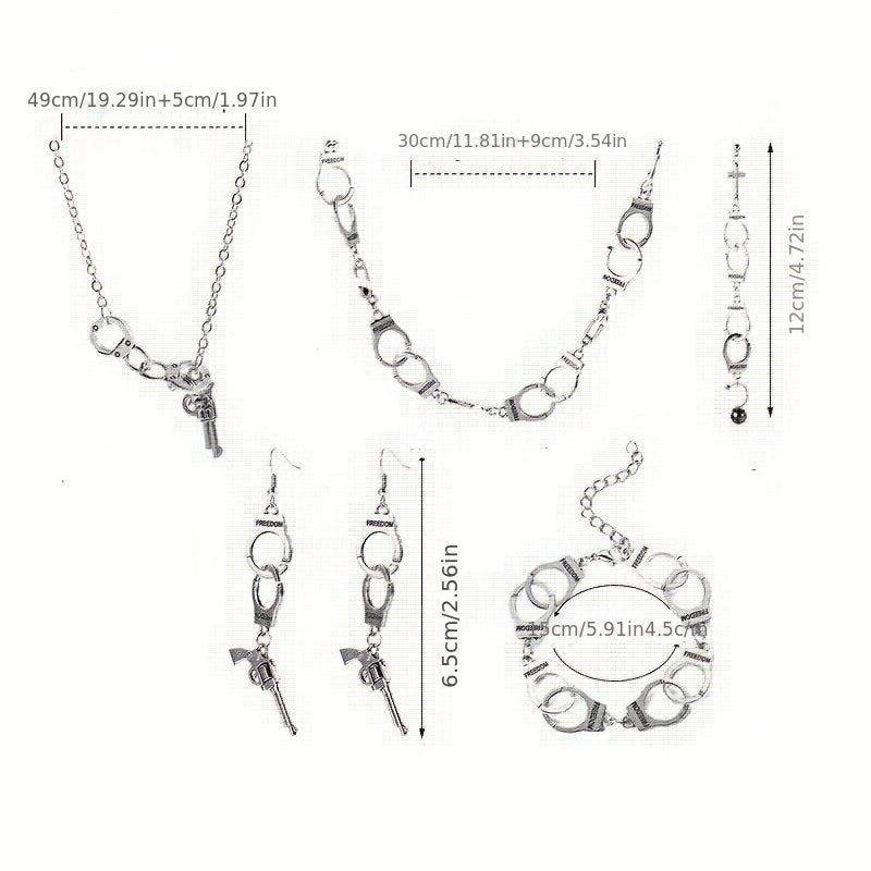 Enhance your daily outfits with this versatile jewelry set. Choose between a handcuff or wheel design to match your style. Perfect accessory for Halloween costumes.