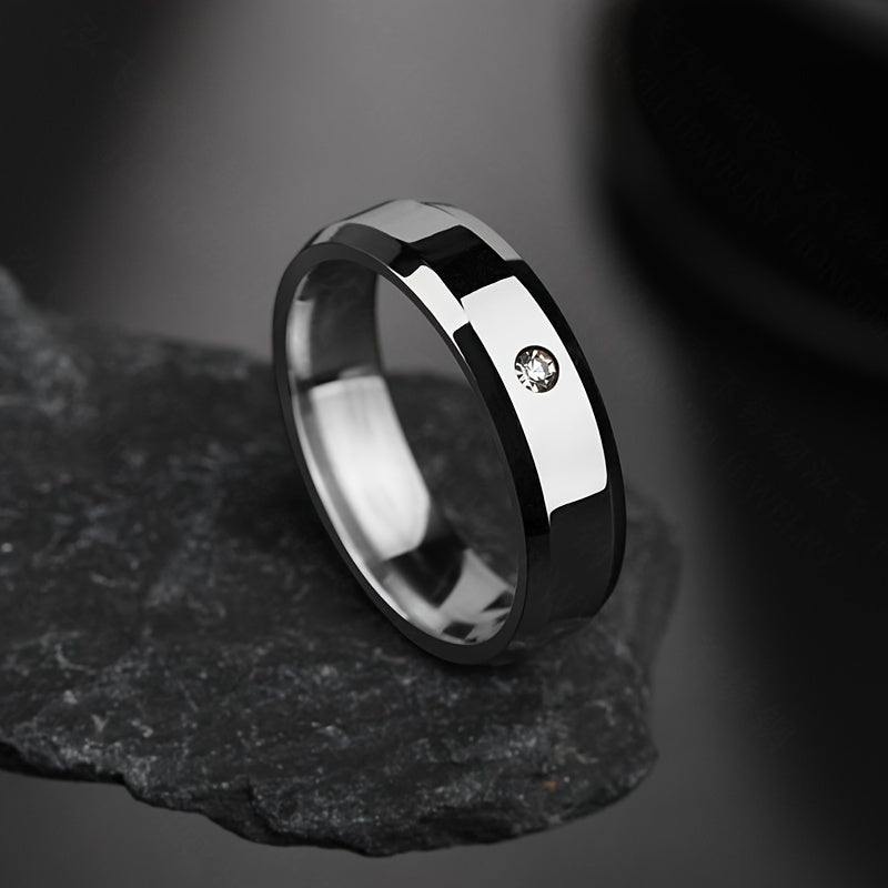 This stainless steel ring is perfect for wedding or engagement, featuring a romantic design.