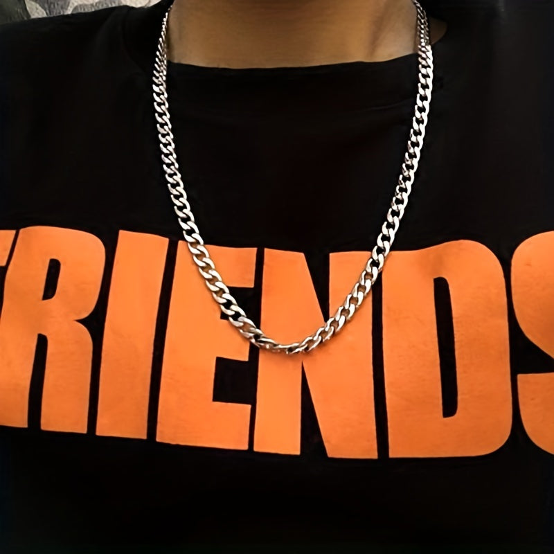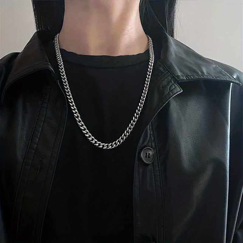 This hip hop chain necklace is made of titanium steel, suitable for men and women. It's a perfect accessory for couples to match their outfits.