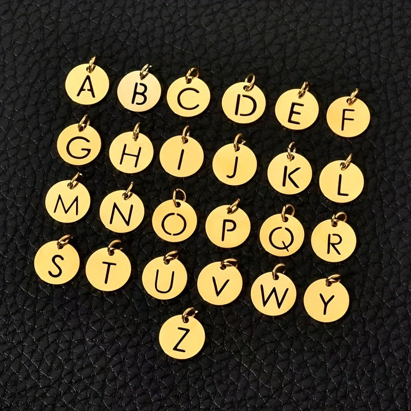 High quality stainless steel pendant featuring the 26 English letters. Perfect for creating custom jewelry pieces.