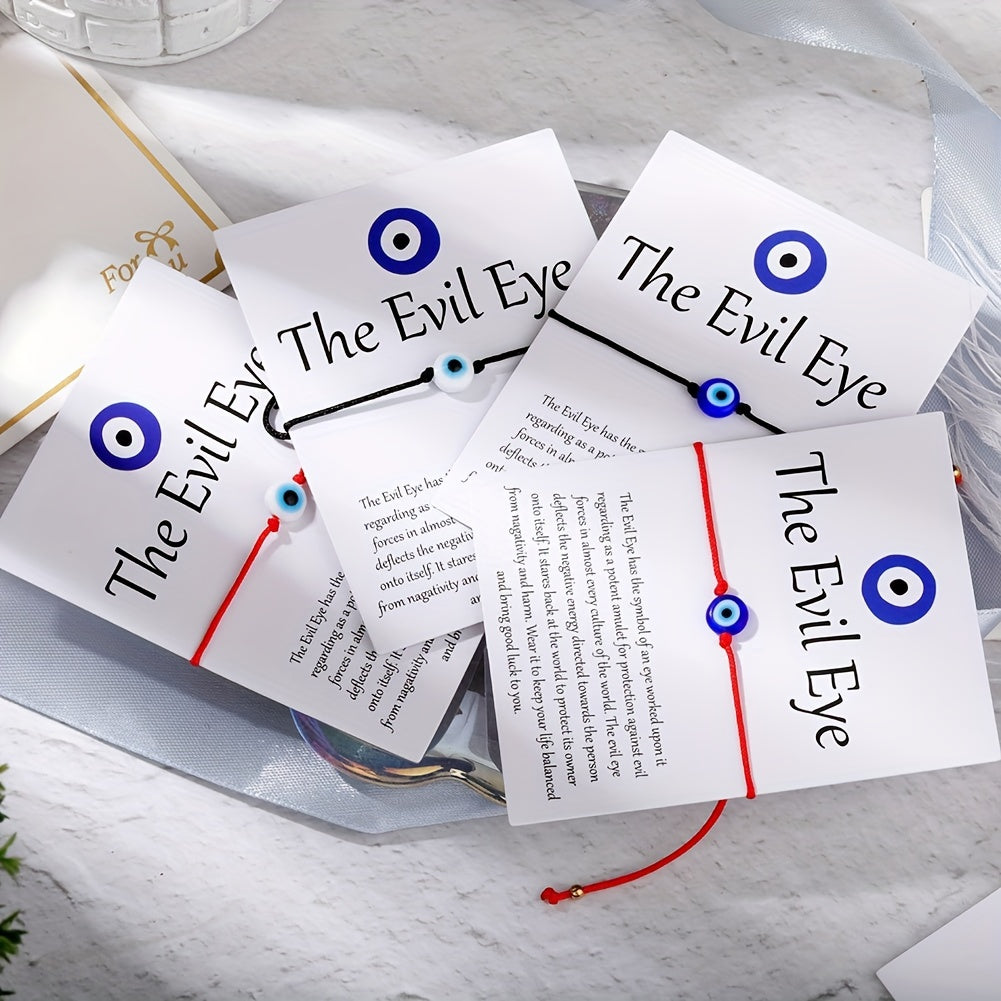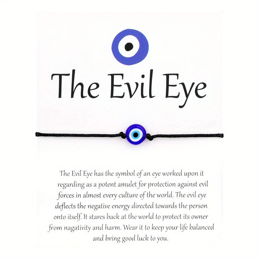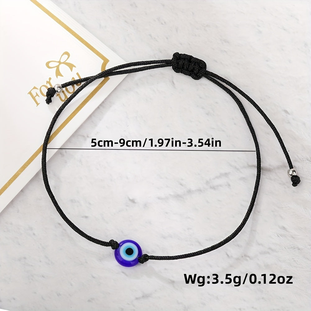 Add a touch of boho style to your outfits with this set of 2 devil's eye pattern string bracelets. Made with PU leather chain, these bracelets are perfect for everyday wear.