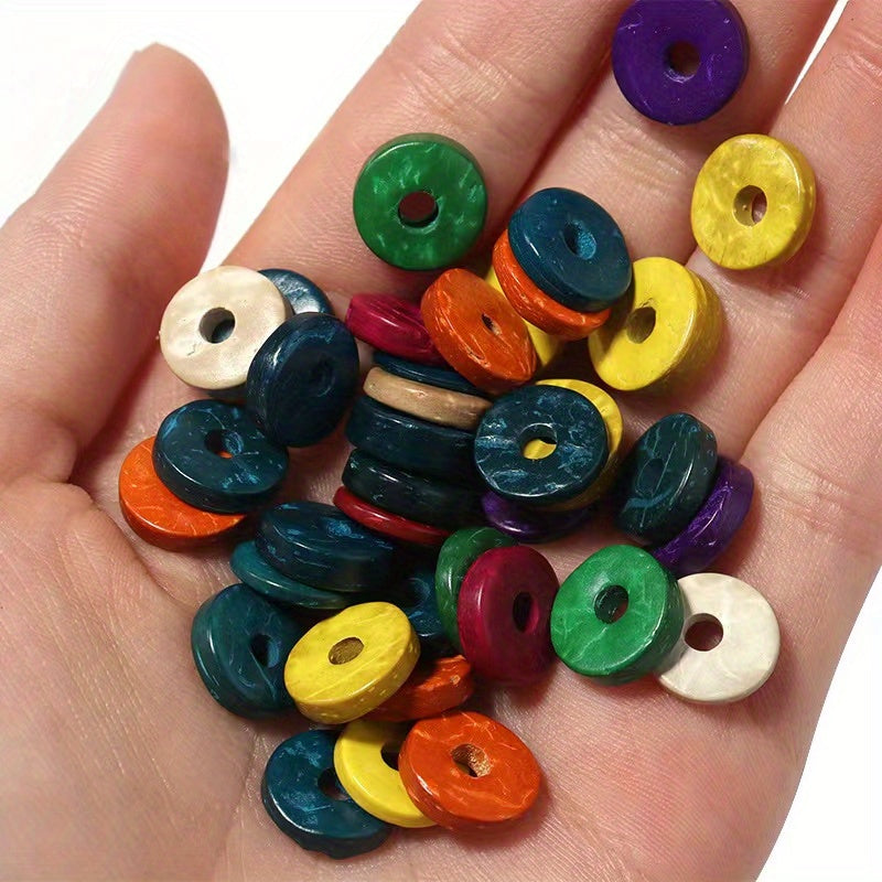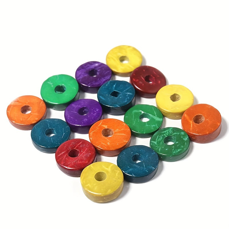 This bag contains 20 pieces of mixed irregular thickness oblate round wood chip beads, perfect for DIY jewelry and clothing accessories. Each bead has a straight hole for easy stringing and separation.