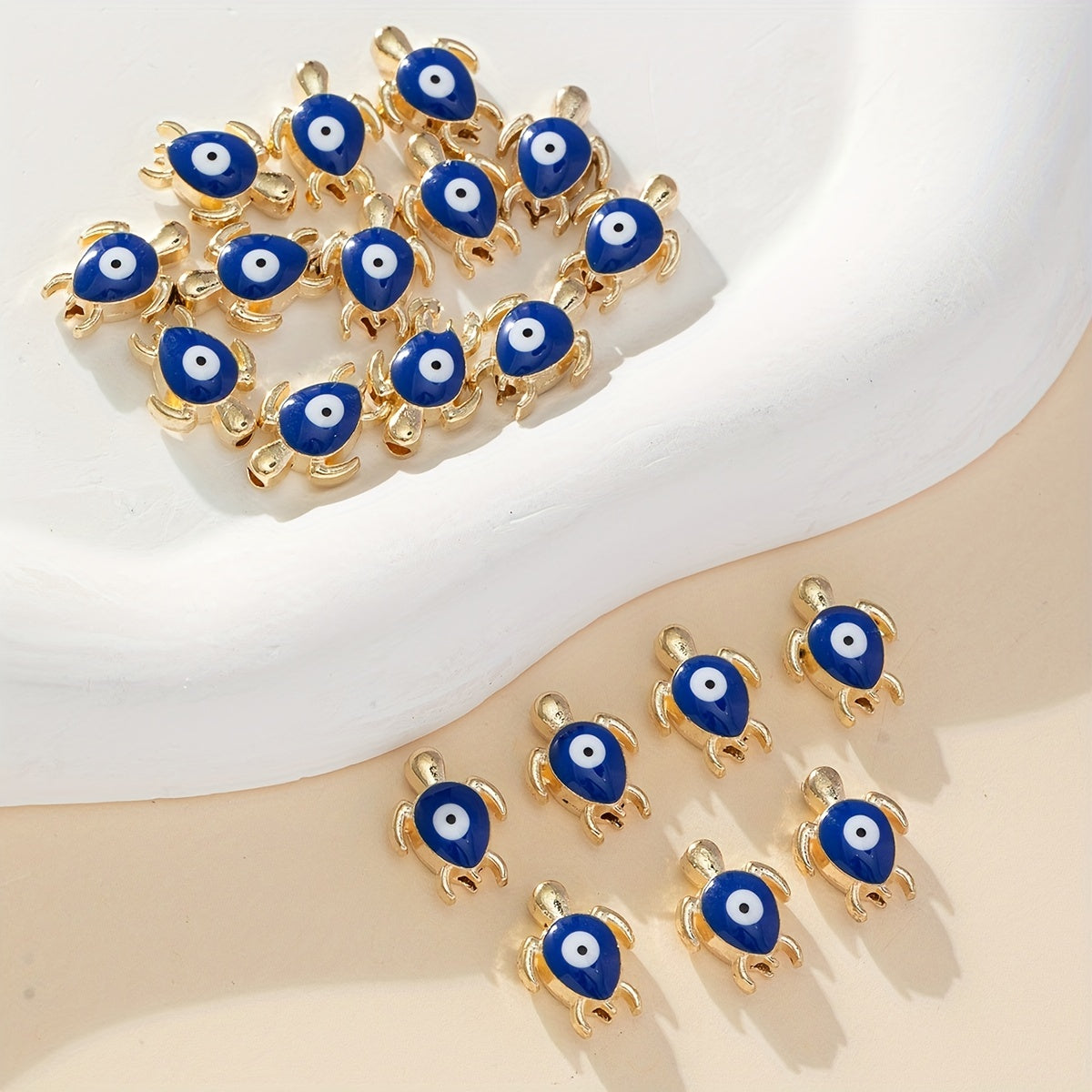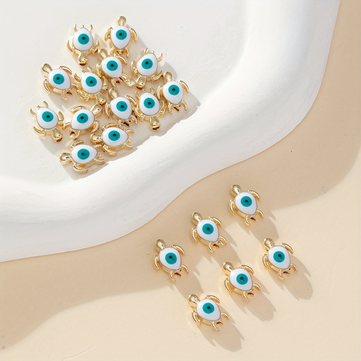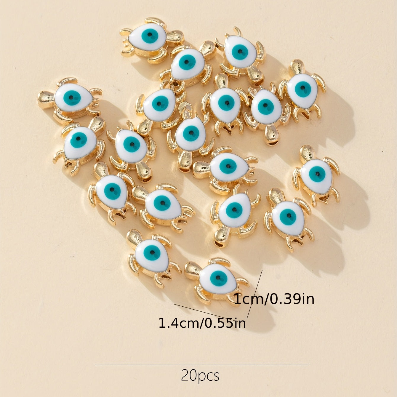 Enhance your jewelry creations with these 20pcs zinc alloy evil eye turtle charms. Perfect for DIY projects and adding a touch of protection and style.