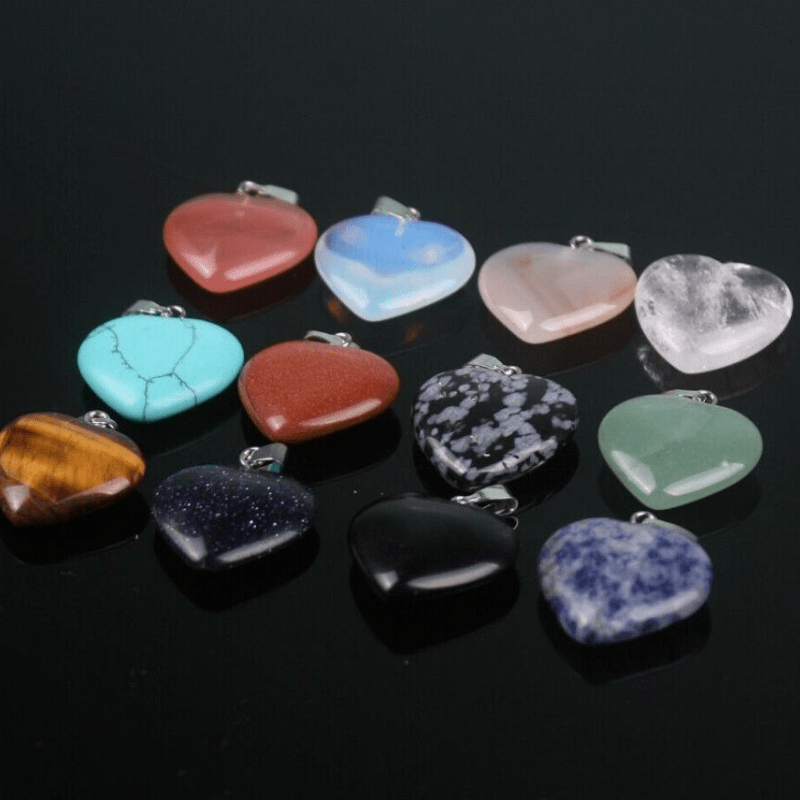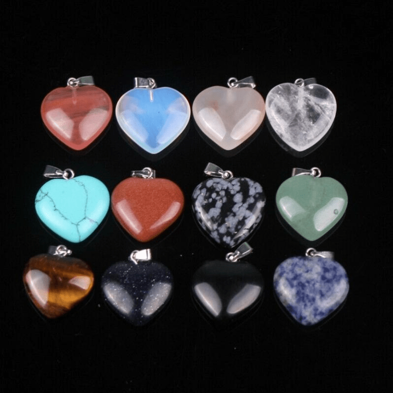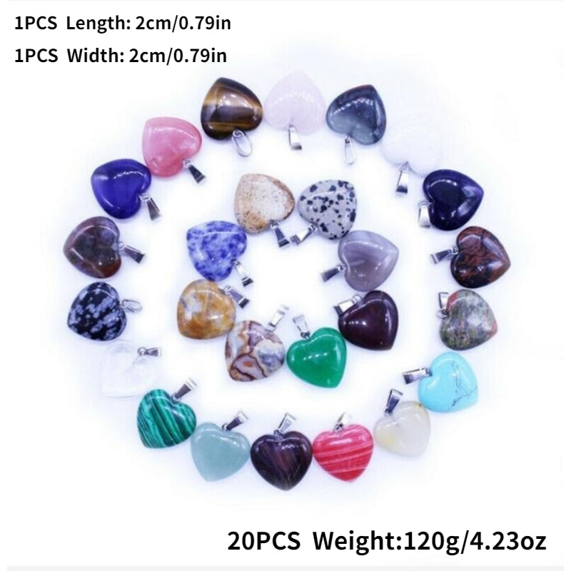 This pack includes 20 natural crystal stone heart-shaped pendants that can be used for necklaces or reiki healing. Each pendant is unique and beautiful.