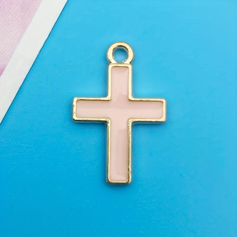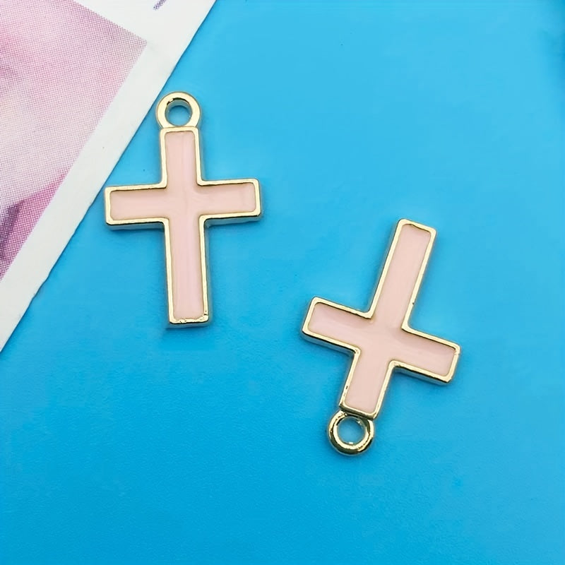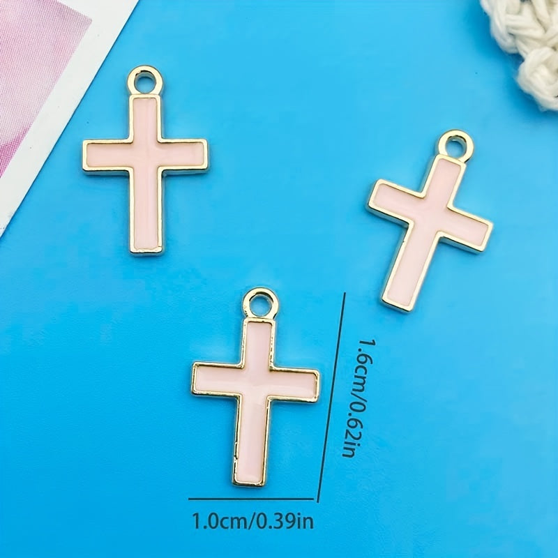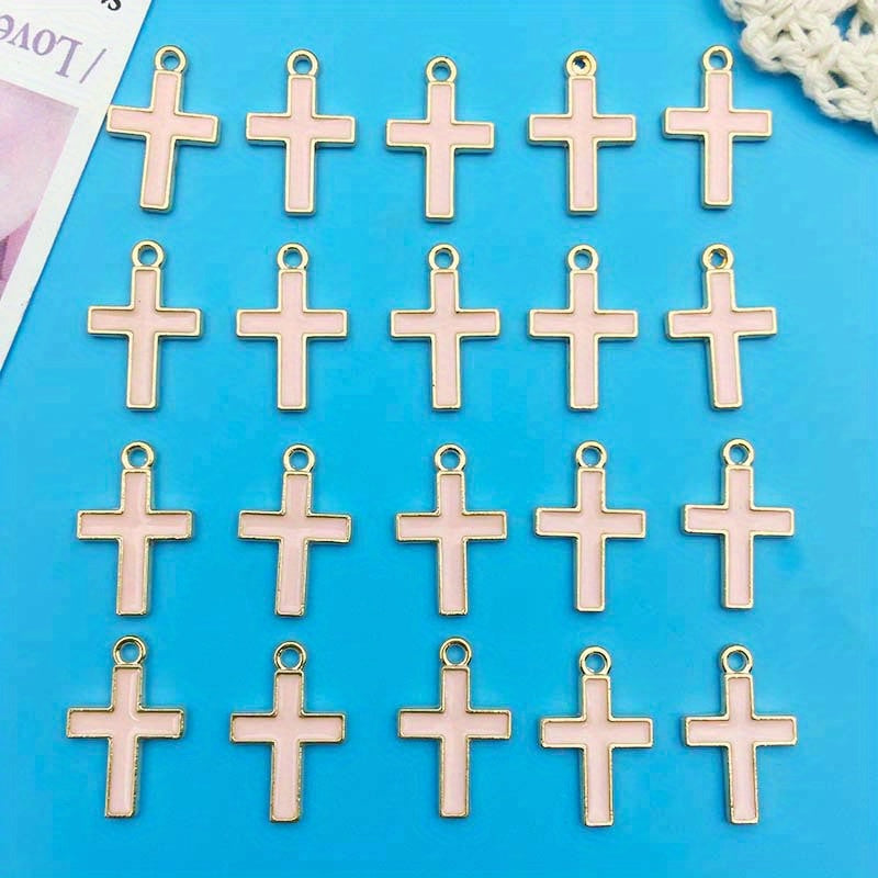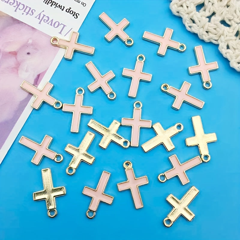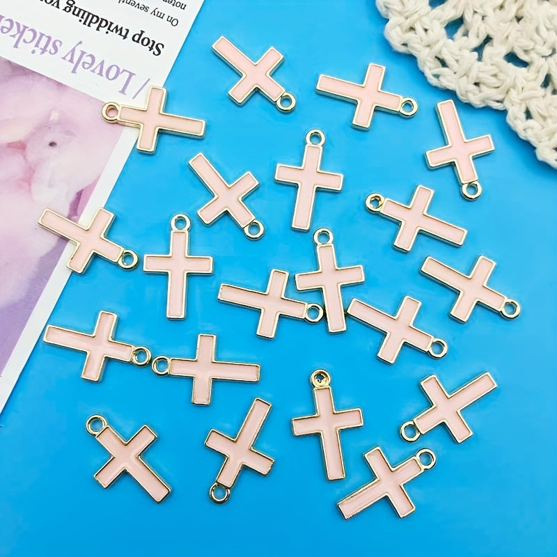 This set includes 20 zinc alloy enamel charms in pink cross shape, ideal for creating necklaces, bracelets, and earrings. Each charm measures 10x16mm.