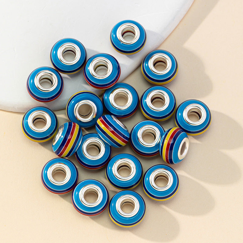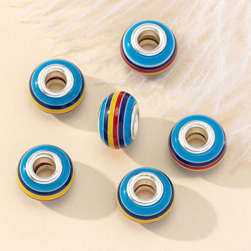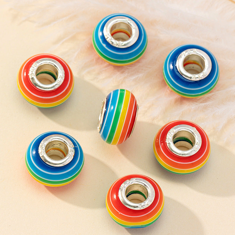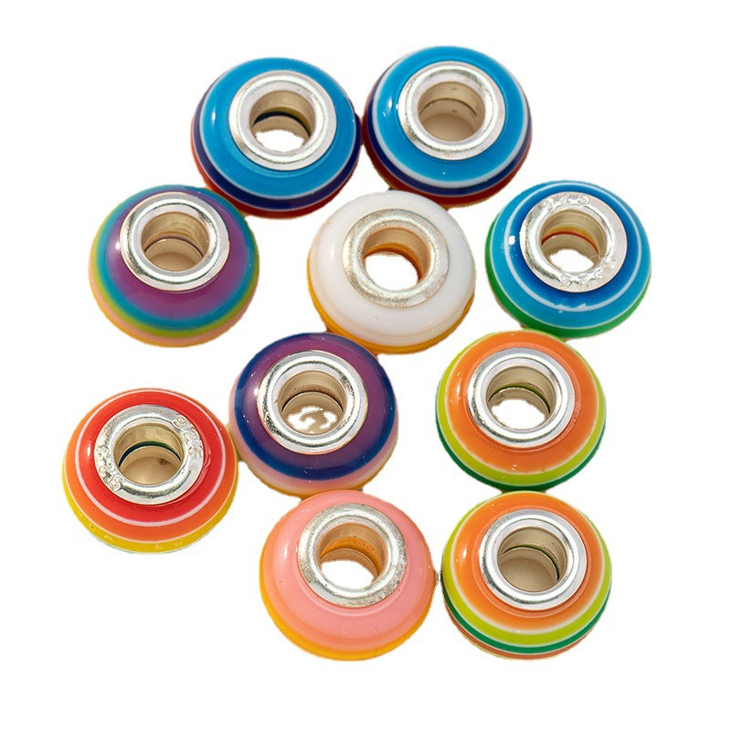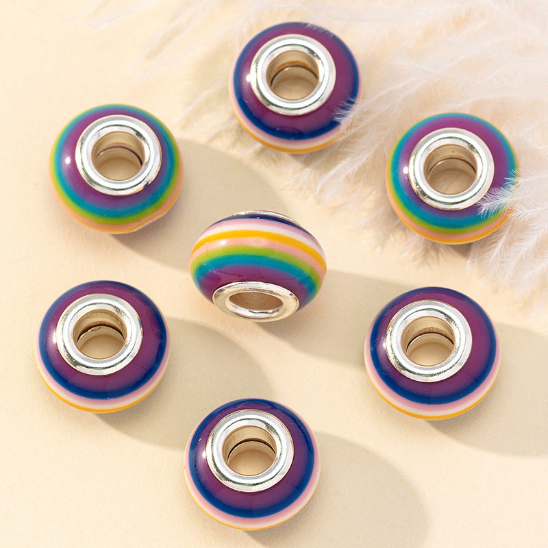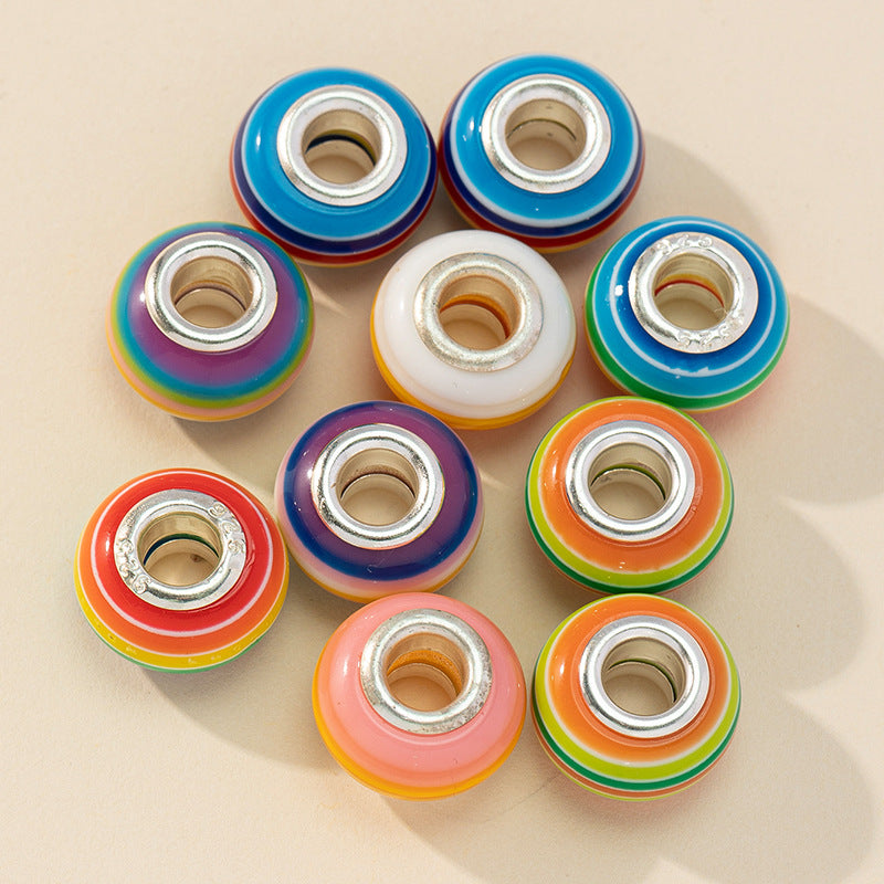 Create stunning jewelry pieces with this set of 20 rainbow striped pattern DIY beads. These large hole resin beads are perfect for making unique bracelets and other accessories.