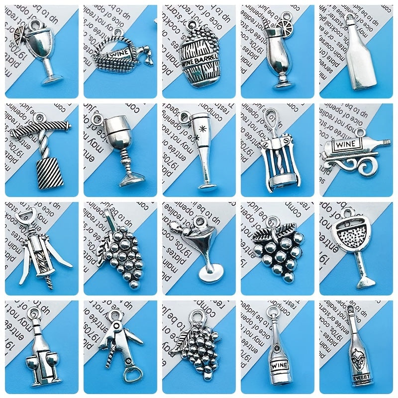 Add a touch of wine-inspired charm to your jewelry creations with these antique silver charms. Perfect for necklaces, bracelets, and other accessories.